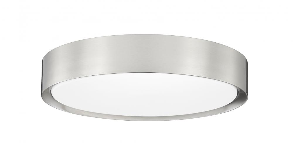 Sleek brushed nickel creates a fresh, refined look for this modern one-light flush mount ceiling light. Integrated LEDs are energy efficient, delivering diffused lighting through a frosted acrylic diffuser that complements a streamlined round silhouette to perfection.