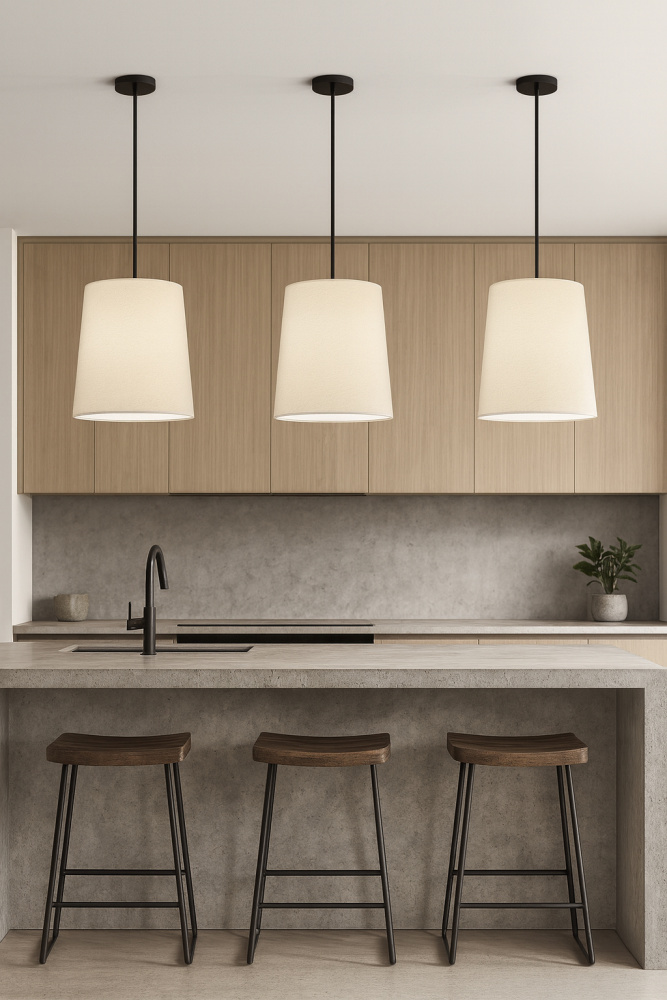 9 Light Incandescent Matte Black Pendant with Boucle Fabric Shade