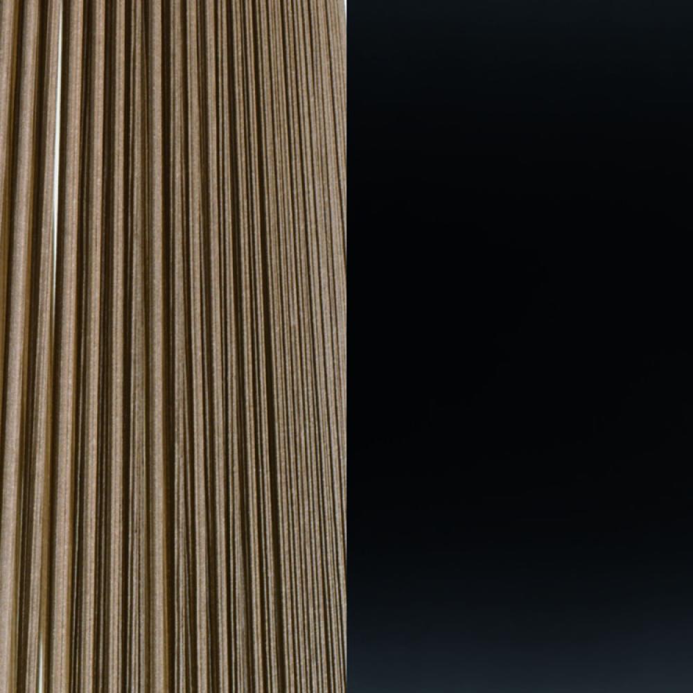 FINISH: A mixed material finish of durable hand-wrapped resin in a warm, medium-tone brown, plus neutral, dark, flat black metal.