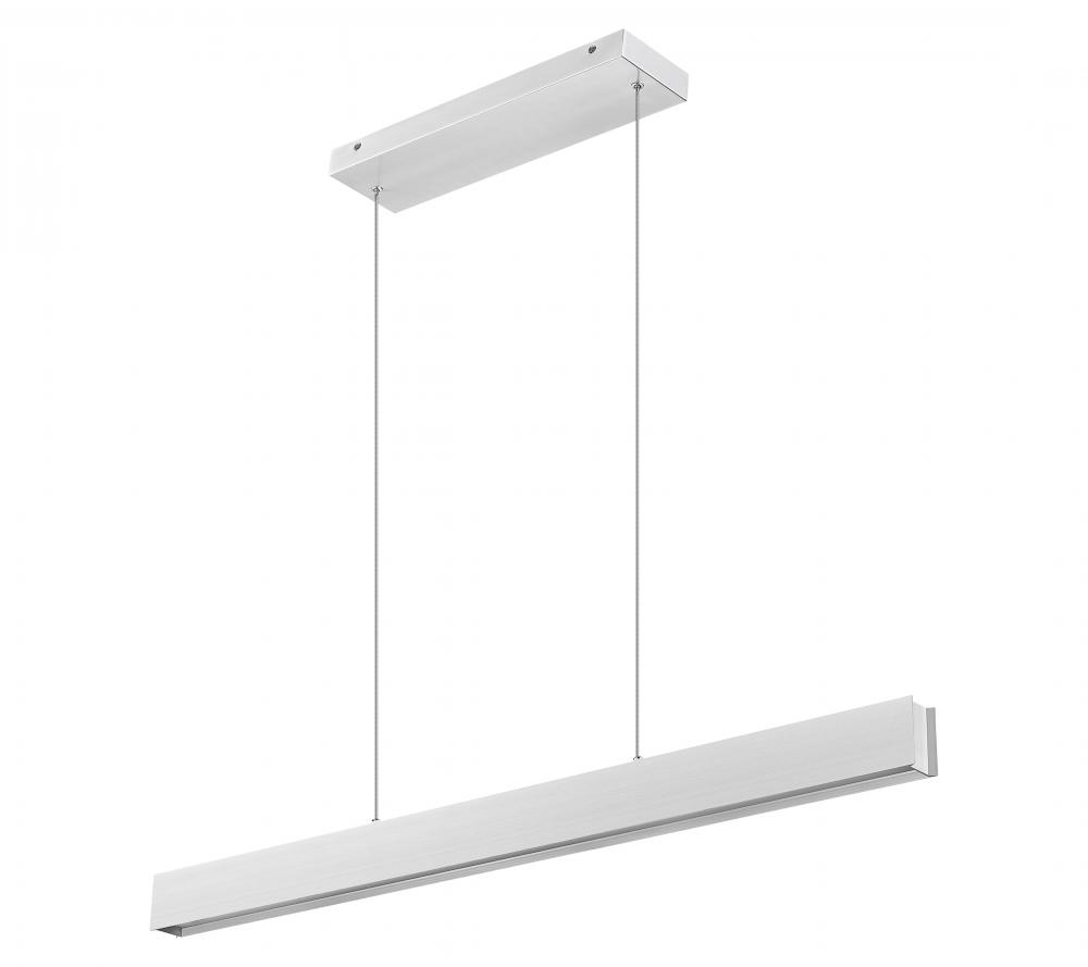 Put finishing touches on your kitchen or game room with a modern linear LED chandelier. Its a sleek, refined design with clean lines and a brushed nickel finish aluminum framework. Integrated LED lighting sits behind a frosted diffuser, adding dimmability and five light color selections for optimal versatility in your modern home.