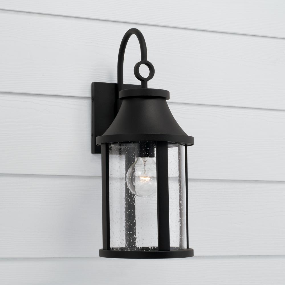 Capital Canada 953611BK - 1-Light Outdoor Cylindrical Wall Lantern in Black with Seeded Glass