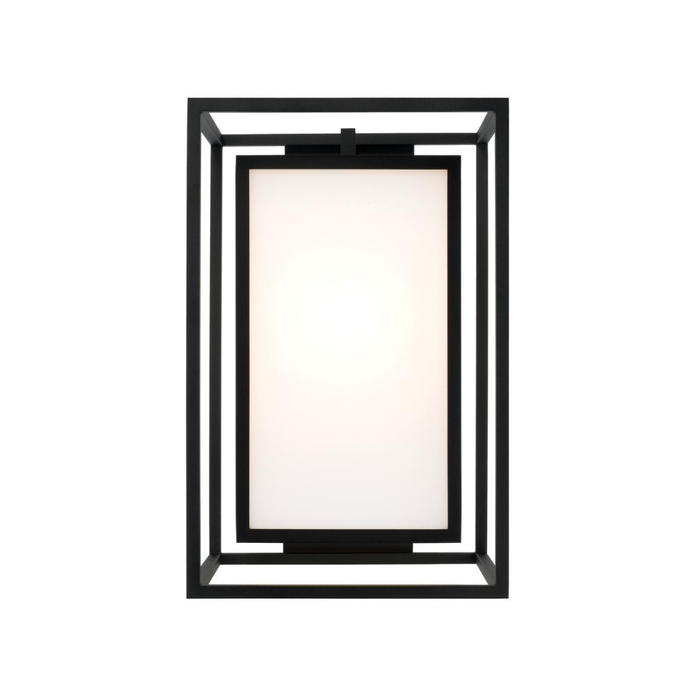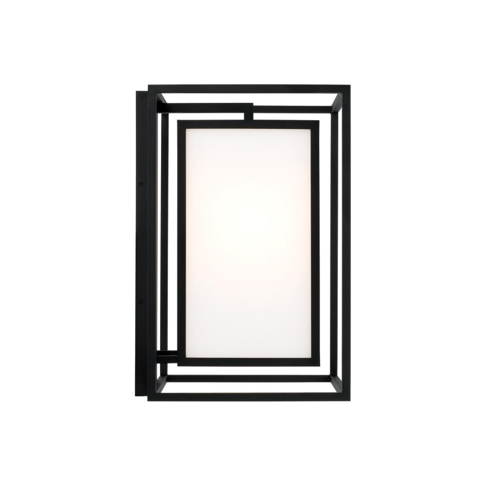 Neat and contemporary, the Aiden Outdoor Wall Lantern creates the illusion of floating light with inner and outer rectangular forms. The Soft White glass panes cast a warm glow to perfectly complement the squared silhouette, while the Black finish delivers a distinct aesthetic. Part of our Rain or Shine Series and backed by our five-year warranty.