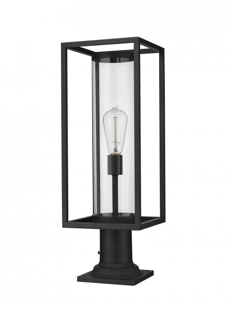 Illuminate your exterior entertainment areas with this modern outdoor pier mounted fixture from the Dunbroch collection. Attach this classy light fixture to walkway columns and corner posts for a striking contemporary vibe, especially with its understated, open rectangular aluminum lantern. This outdoor lantern also features a dark black finish that lend itself to practically any building facade color combinations, as well as a single light sheathed by a clear cylindrical glass globe to illuminate spacious porches and verandas.