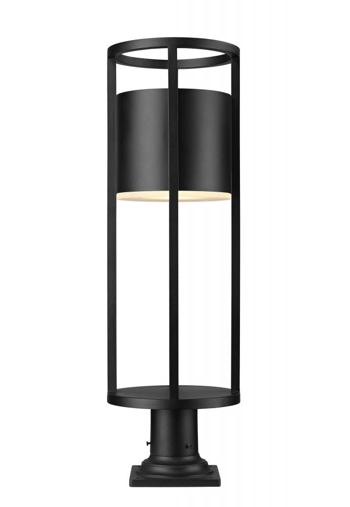 Add a design-forward look of geometry and art in one to a landscaped space or walkway. This one-light outdoor pier mounted fixture from the Luca series offers an openwork cylinder frame featuring black aluminum with an etched glass diffuser. LED lighting offers energy efficiency to embellish its value.