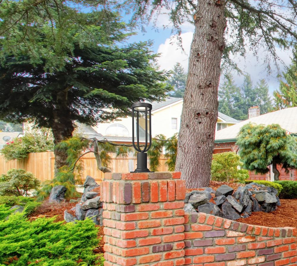 Elements of style and versatility blend to perfection in a modern one-light outdoor post mount fixture that showcases selectable color temperature and an eye-catching profile. Perfect for railings, stairs, and more, the light features an energy efficient LED and a sand black finish for marine-grade durability, all complementing a sleek silhouette that includes an open cage lantern with a teardrop shape that adds graceful elegance.
