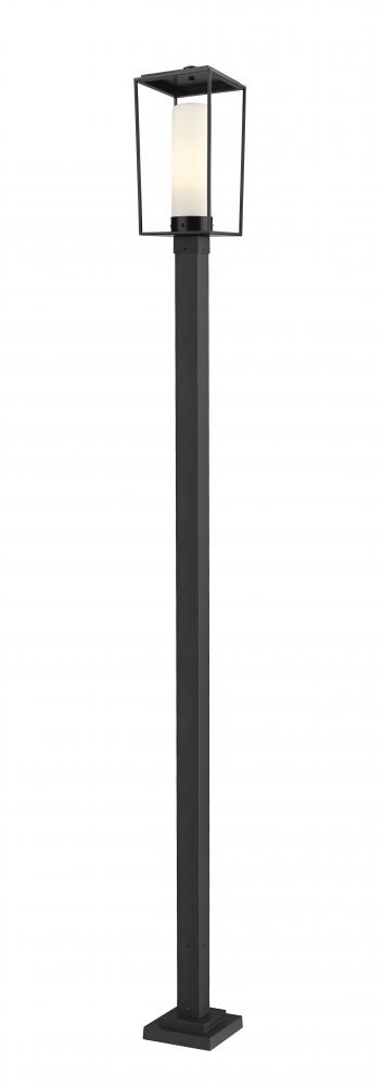 A black finish steel frame and post create dynamic elegance perfect for illuminating homes and walkways, making the Sheridan one-light outdoor post mounted fixture an excellent option. With a minimalist design and an open box-style frame made of black finish steel, this stylish light glows through a filtered shade made of white opal glass.