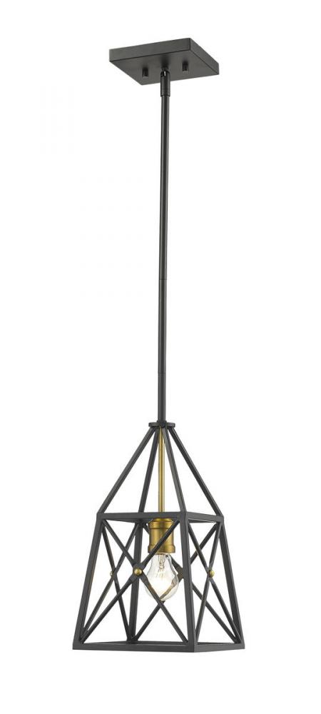 Indulge in an exercise of geometrics and stunning interior d?cor, adding this single-light mini-pendant to a compact living space. Light up a nook or reading space with a stylish Matte Black finish cage shade harkening back to an industrial motif, and a gorgeous Old Brass bulb mount that delivers perfect contrast.