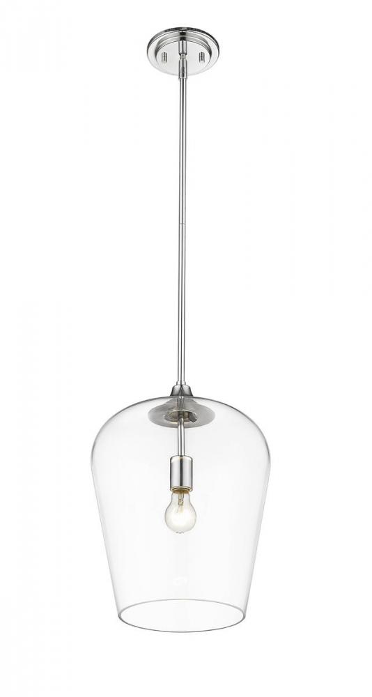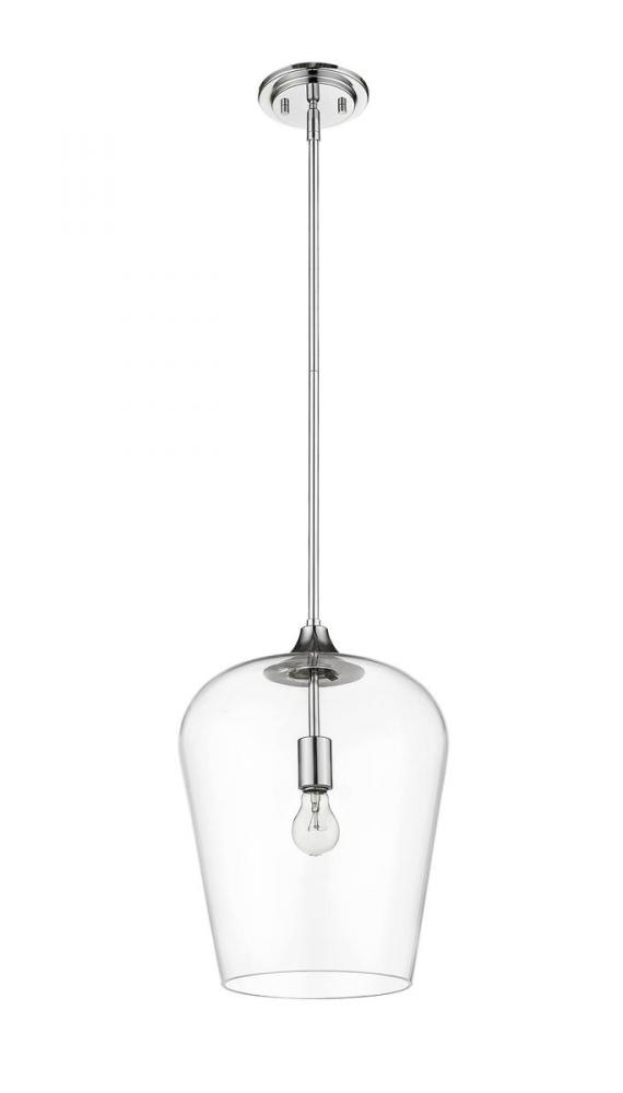 Sheer sophistication invokes a silhouette mimicking an inverted goblet, turning this one-light pendant into a solid choice for an ultra-modern, custom kitchen, bedroom, or living area. Choose this exquisite pendant from the Joliet collection, admiring its Bordeaux clear glass shade that embellishes a radiant chrome finish down rod and round canopy and delivers a low-key yet high-class effect.