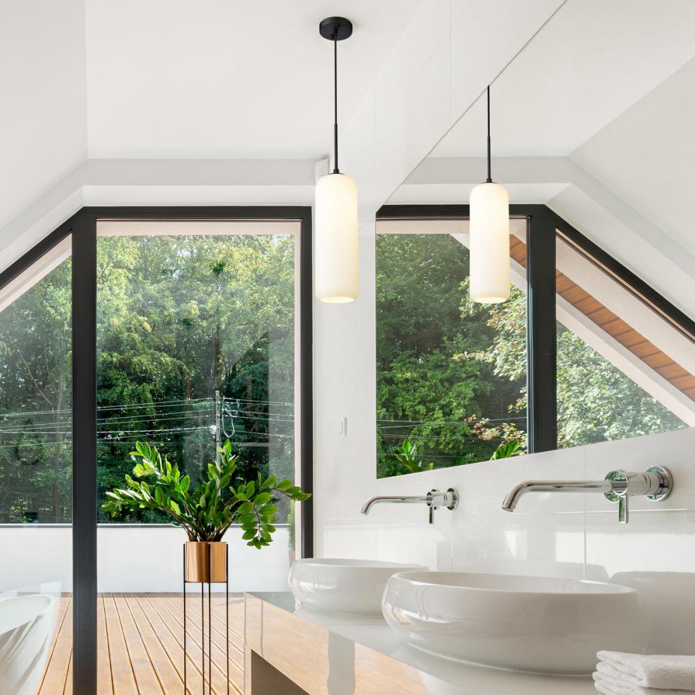 An homage to Mid-Century Modern, the Monty Single Light Pendant is distinguished by a simply curved opal glass shade and a choice of Matte Black or Brushed Nickel hardware. Monty One offers understated glamour over a kitchen Island or grouped in a cascadin