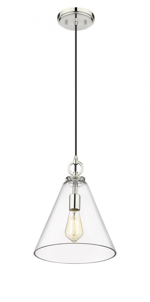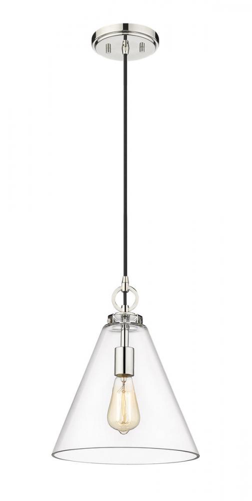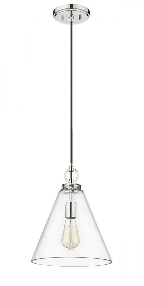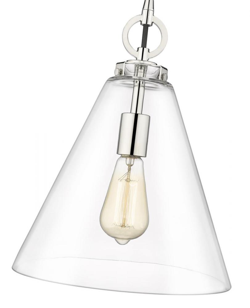 Light up a bedroom or living room with this sleek, modern, polished nickel pendant light from the Harper collection. Crafted with clean lines and a clear glass shade, this metal pendant light is an elegant addition to transitional or modern d?cor.