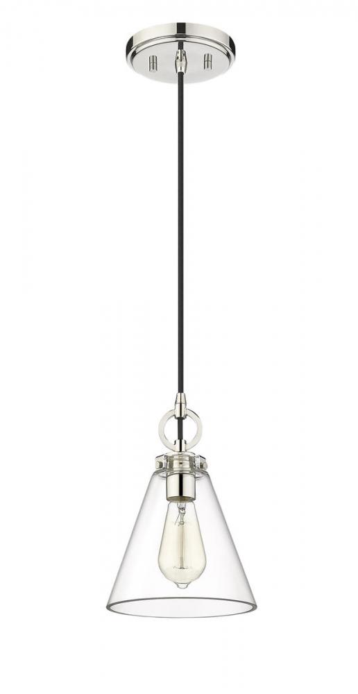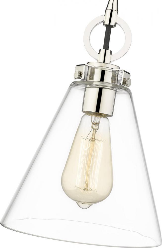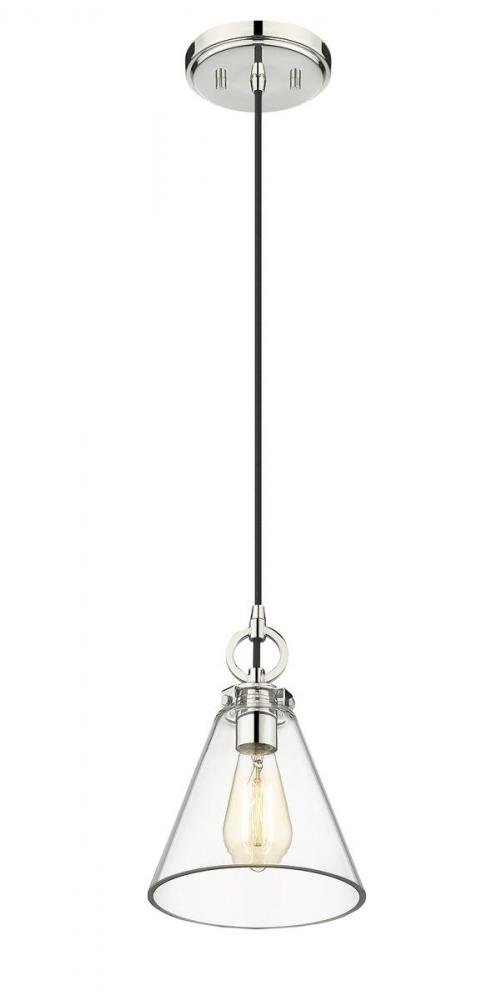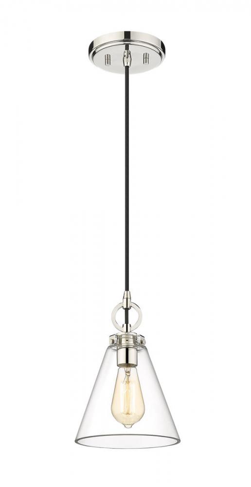 Add a fresh, modern edge to transitional d?cor with this sleek, metal pendant light from the Harper collection. Showcasing a clear glass shade and a slim, steel frame in a high-shine, polished nickel finish, this sophisticated fixture illuminates a room in effortlessly elegant style.