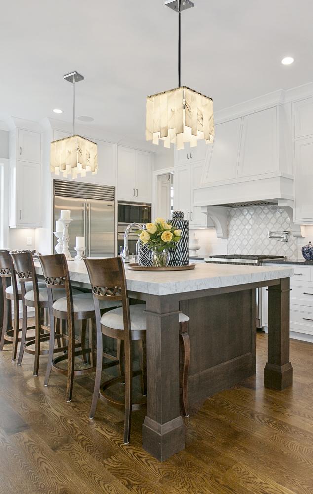 Embrace the glam style of Art Deco with a hint of minimalism in a light fixture with impact. Featuring tasteful alabaster-like strips alternating in length and arranged around a squared polished nickel finish steel frame, this one-light pendant delivers a versatile yet decadent aesthetic. Charming rubbed rivot detailing elevates this gallery inspired pendant that goes with the flow as it complements a gritty rendition of toned-down glam in a contemporary or transitional foyer or living area.