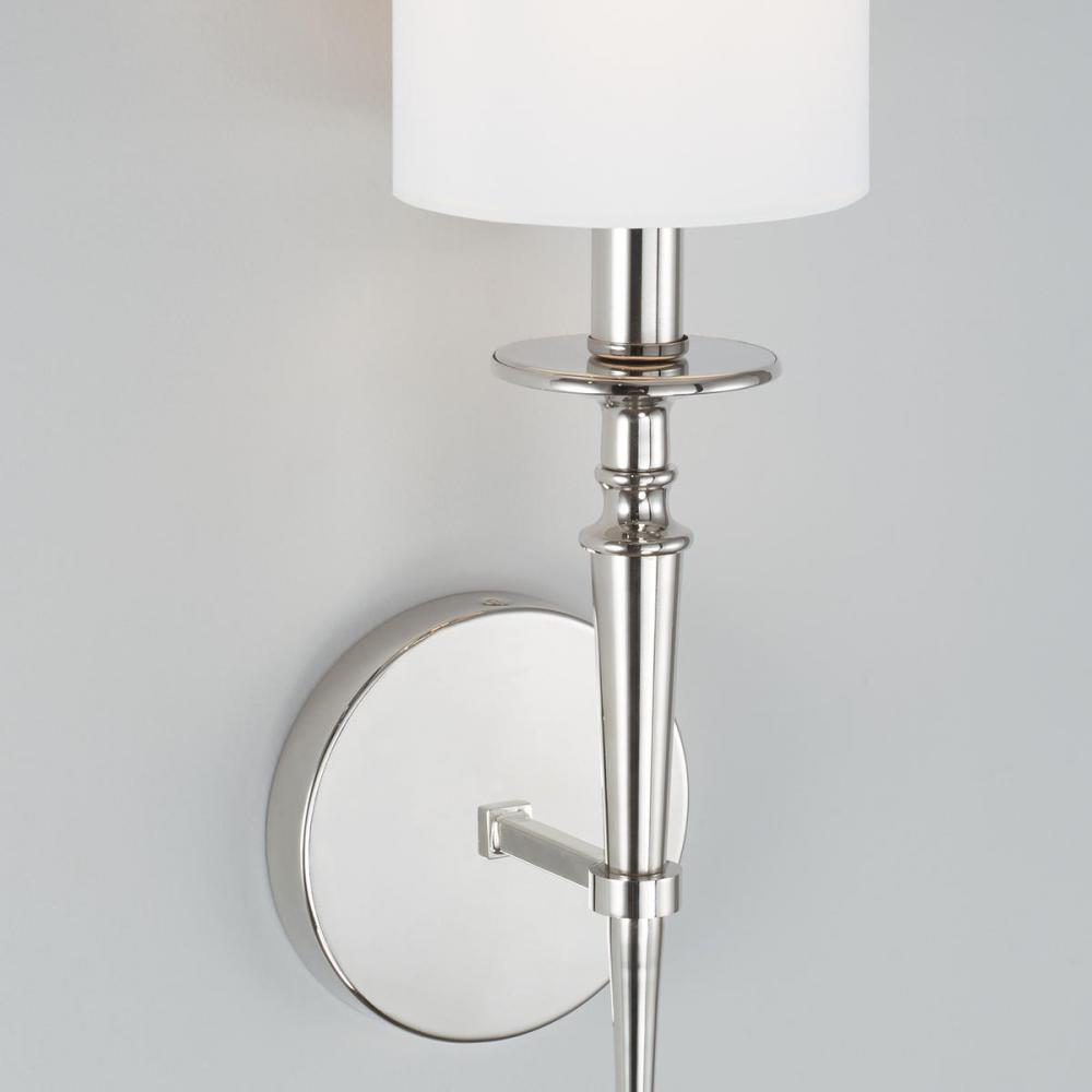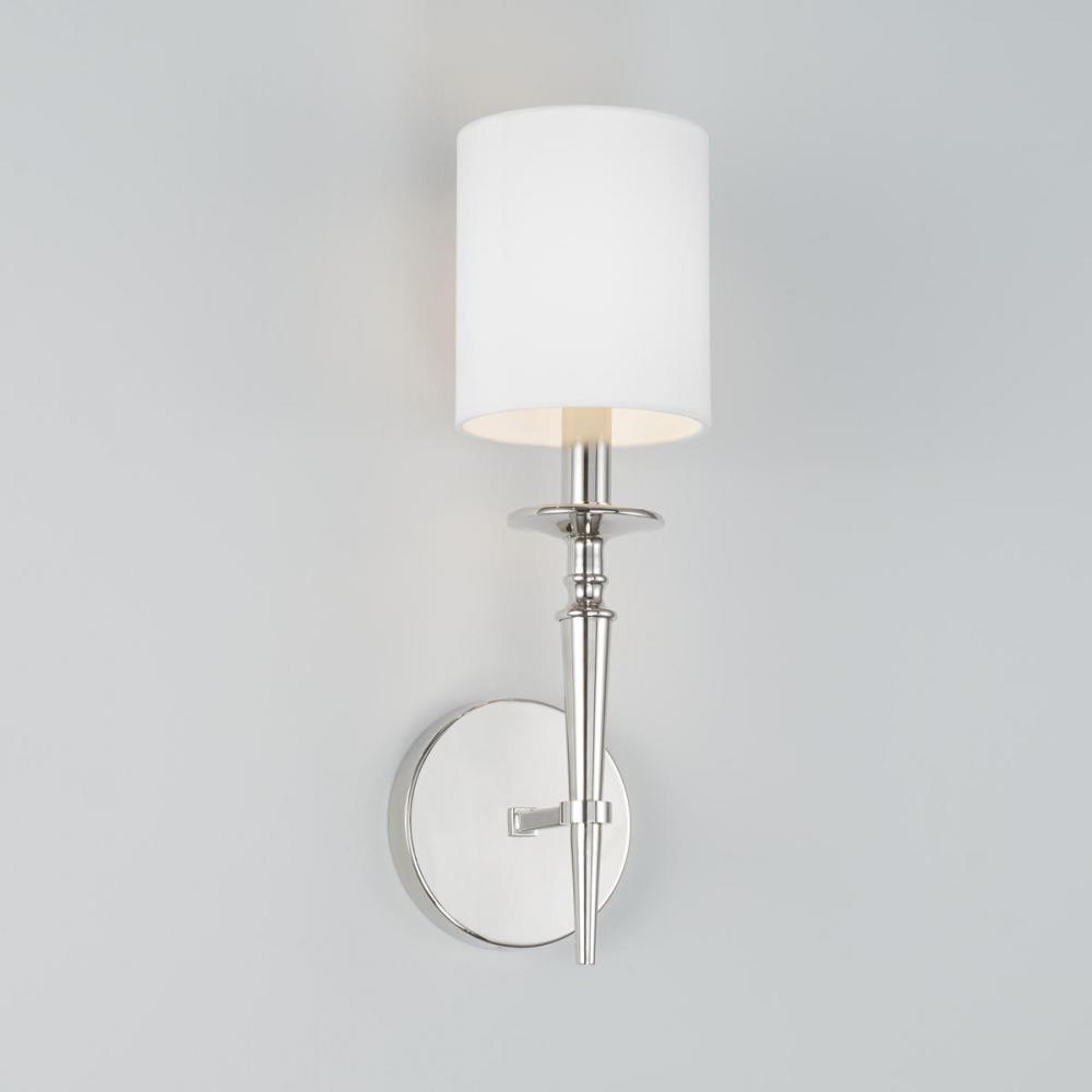 The dramatic candlestick detailing on the Abbie 1-Light Sconce in Polished Nickel brings a contemporary nod to this updated design.
