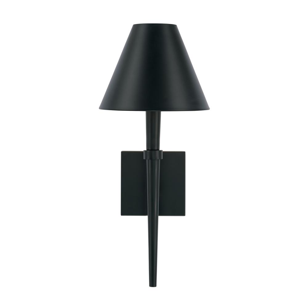 With a classic elegance that commands attention, the Holden Sconce adds sleek sophistication to any space. The dapper details and tapered metal shade in Matte Black finish bring designer style and add dimension.