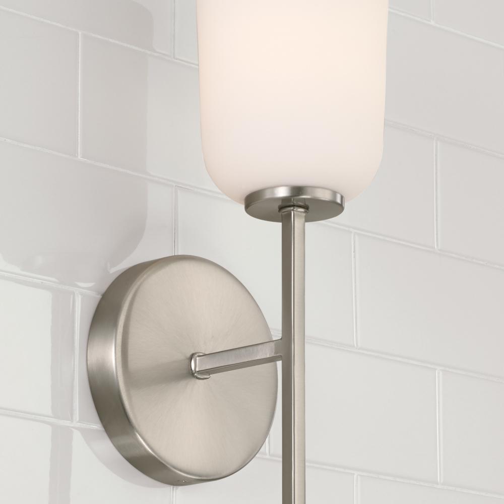 5"W x 14"H 1-Light Sconce in Brushed Nickel with Soft White Glass