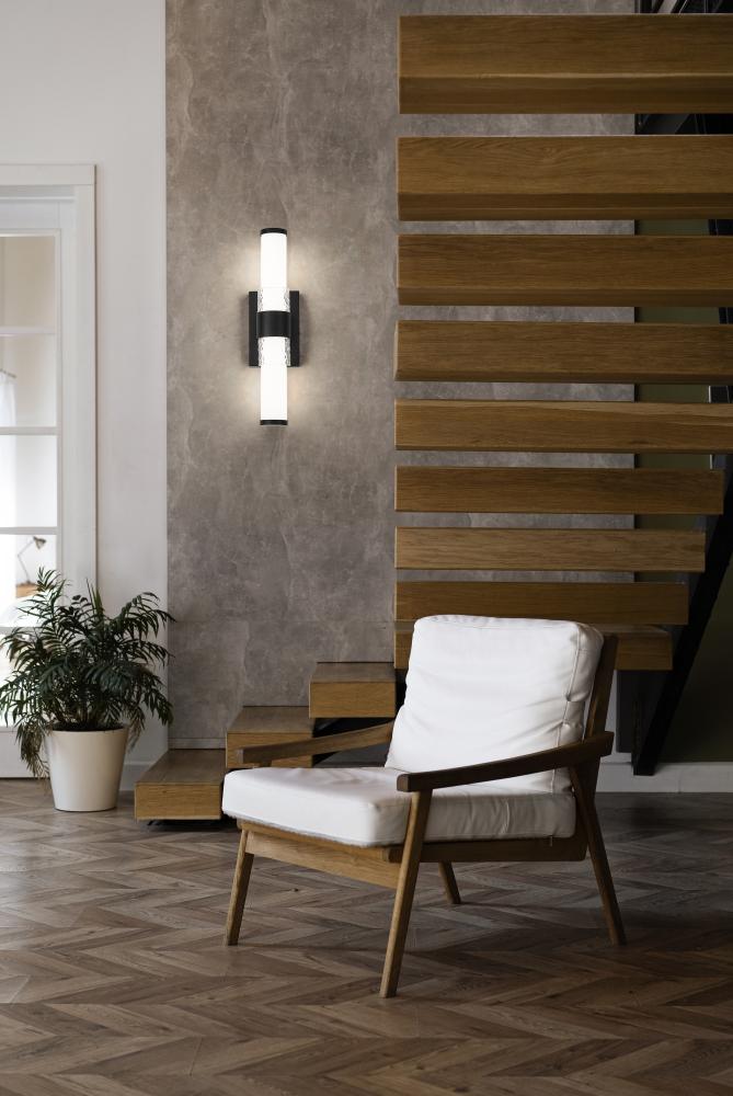 Wrapped in a matte black finish, the Egon Vanity Light exudes modern poetry. Its rippled glass glows with quiet warmth, while the dark frame gives it form and focus. The effect is captivating and an elegant interplay of shadow, shine, and shape.