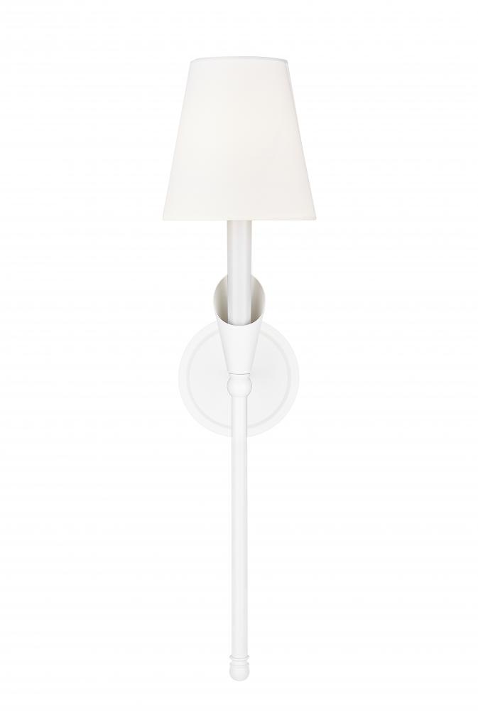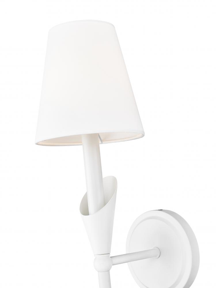 Delicate in design yet striking in presence, this sconce adds a sculptural softness to the wall. The textured white finish offers a clean, airy feel, while the curved arm and fabric shade mimic the gentle arc of a bloom. It?s a versatile accent that freshens up any room with subtle elegance and a light designer touch.