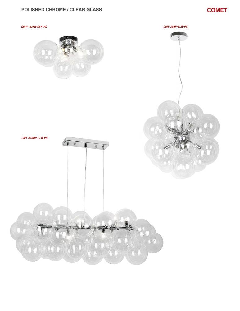 The emphasis is on the appeal of the spherical shape in the Comet family of lighting. Available in varied configurations and sizes, Colby lighting shows off your opulent sense of contemporary style. The primary feature of each Colby light is created with glass globes that reflect and amplify the lights set within a metal frame. Clear or smoked glass, and a choice of contrasting metal finishes, complete the striking design. It's a sure way to create textural appeal and add curves to any area of the home from hallways to main rooms like the dining room or kitchen.
