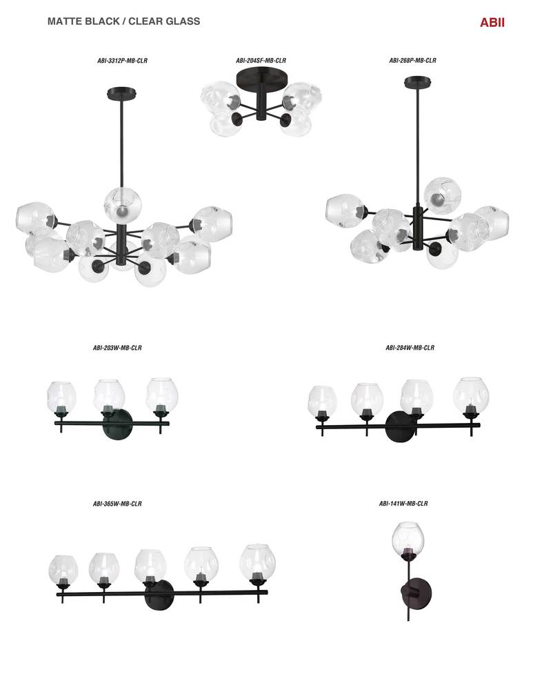 The eye-catching contrast of glass globes and sleek straight lines form the basis of the ABII family of lighting fixtures. It's a versatile and adaptable design with options ranging from a single sconce to a large pendant light in a look that can work with virtually any room or design scheme. The metal base and arms create a pattern to showcase the reflective effects of the glass globes. Colorway options include complementary finishes from warm to stylishly dramatic. Halogen lights add a warm glow. From ultra-modern minimalism to mid-century and even more traditional décors, the ABII family of lighting’s transitional design is both luxurious and timeless in its appeal.