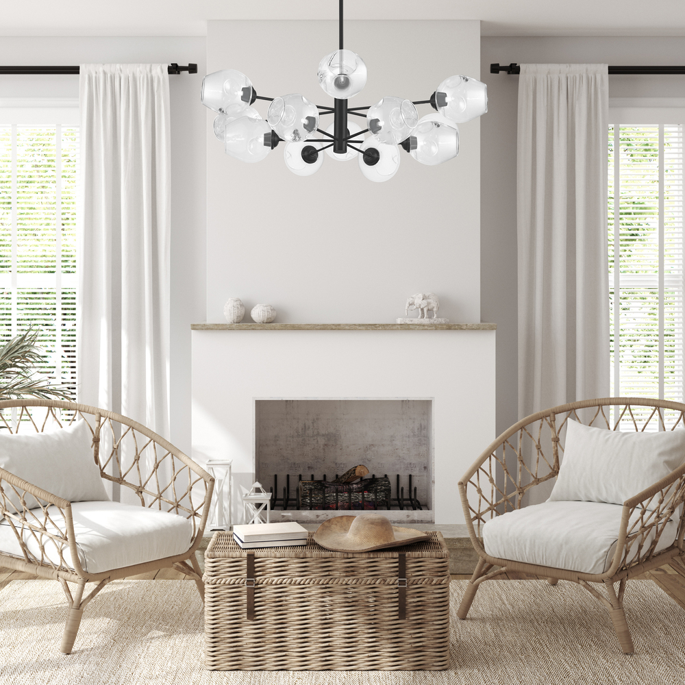12LT Chandelier, MB w/ Clear Glass