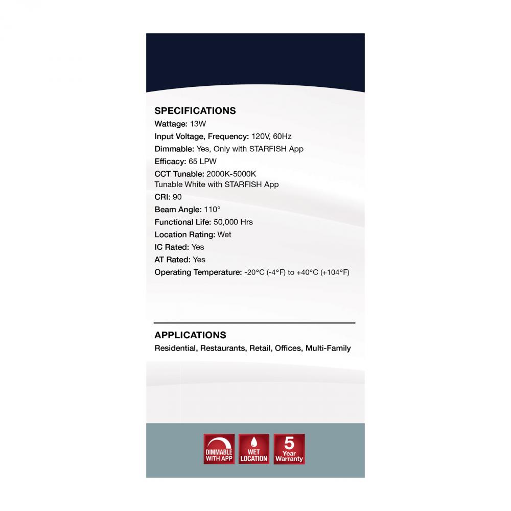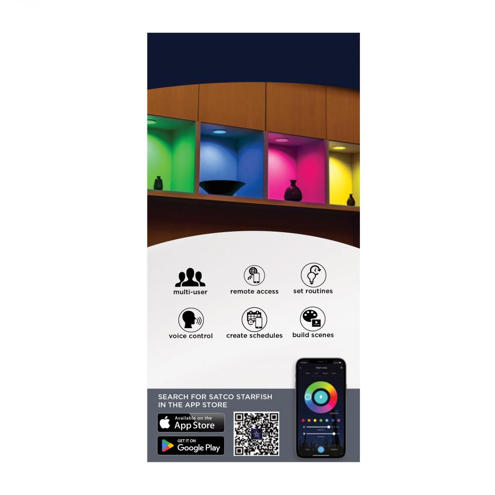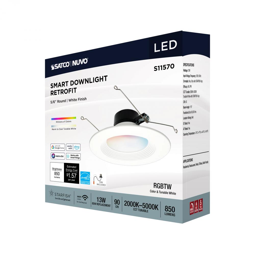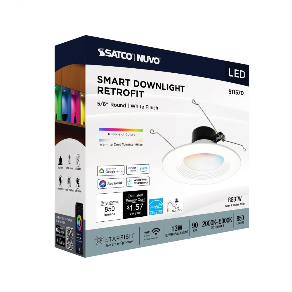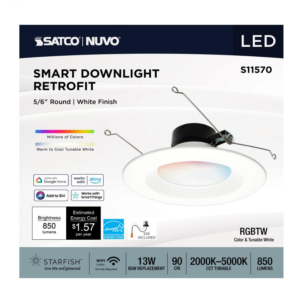 SATCO NUVO's S11570 LED Retrofit Downlight with STARFISH technology is the ultimate choice for smart lighting and ambiance control. Download the STARFISH app to customize any tunable white color temperatures from 2000K warm white to 5000K natural light