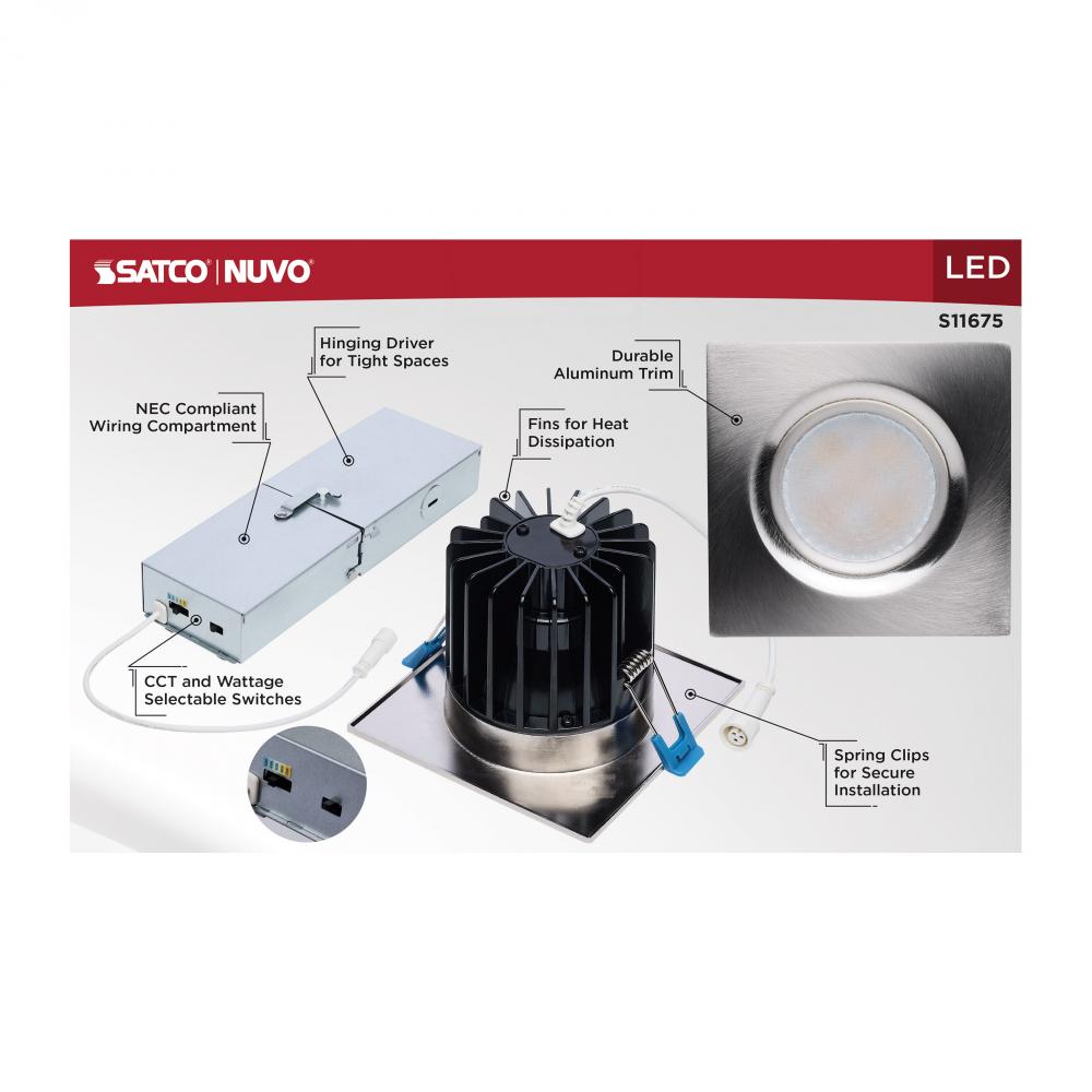 16/20/24 Watt LED Remote Driver Downlight; 27K/30K/35K/40K/50K CCT; Field Selectable; Square; Brushed Nickel Finish; Dual Dimming; 120-277 Volt