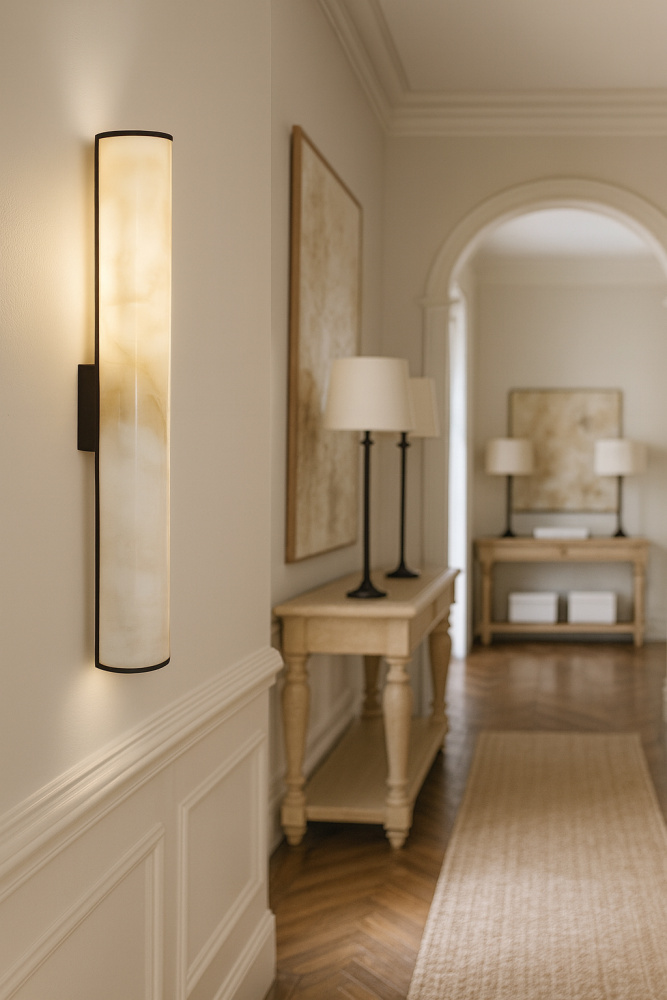 19W Wall Sconce, Matte Black w/ Marble Alabaster Shade