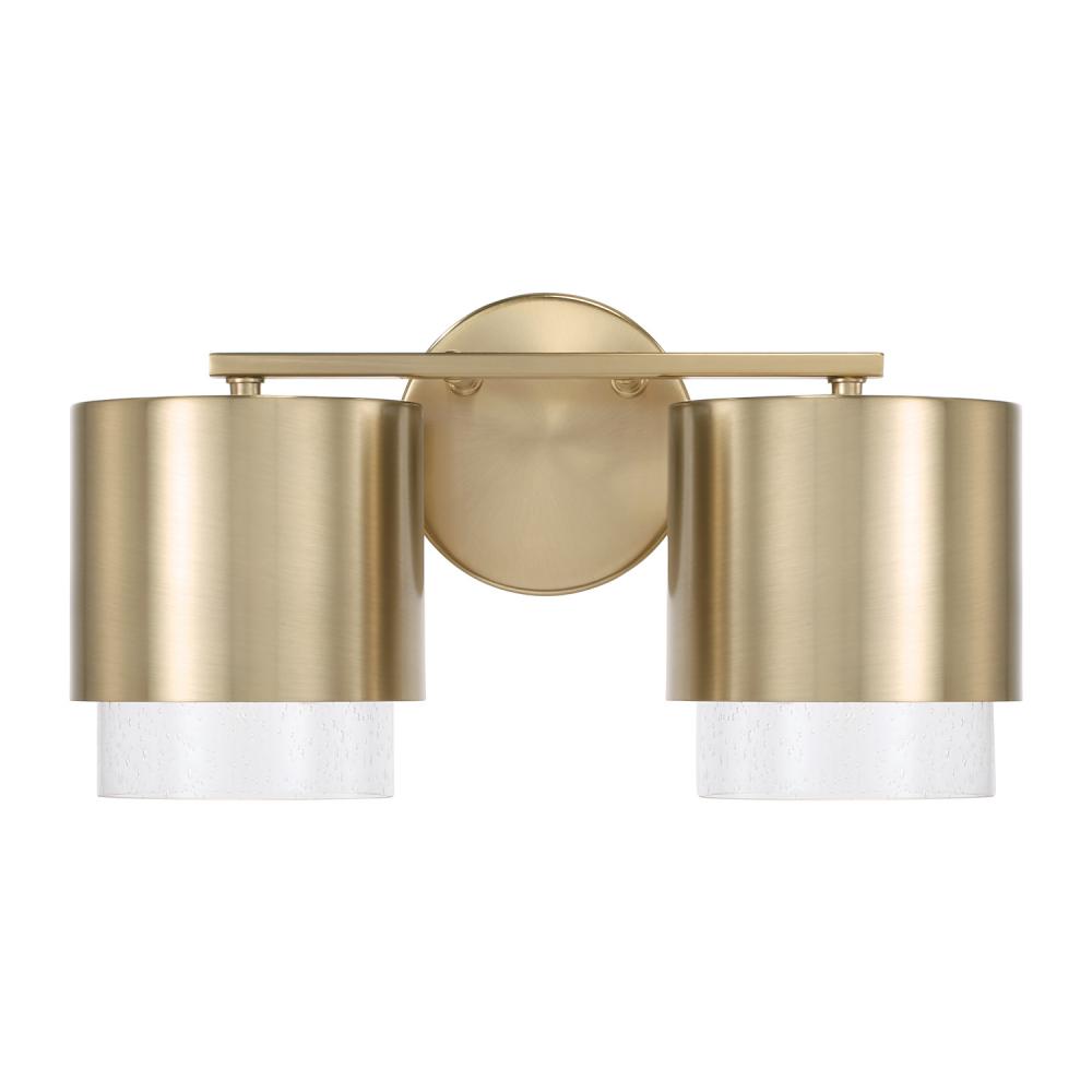 Contemporary forms meet illuminated elegance. The Weller 2-Light Vanity combines sleek, cylindrical silhouettes with seeded glass to cast a unique powder room glow. The Matte Brass finish brings a hint of warmth and subtle shine.
