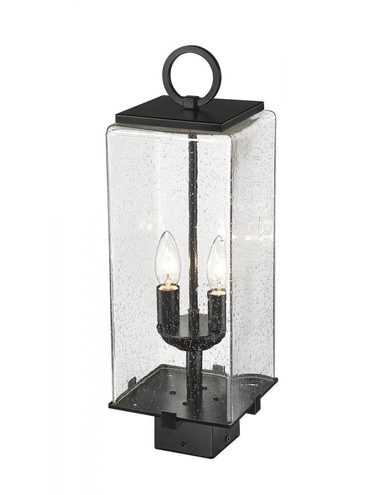 This sleek, coastal-inspired two-light outdoor pier-mounted fixture in black features will look perfect on your porch or patio. Coming with a black finish and seeded glass shade with a rectangular base.