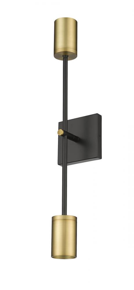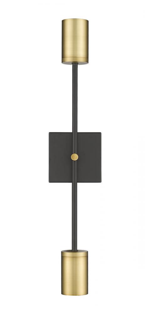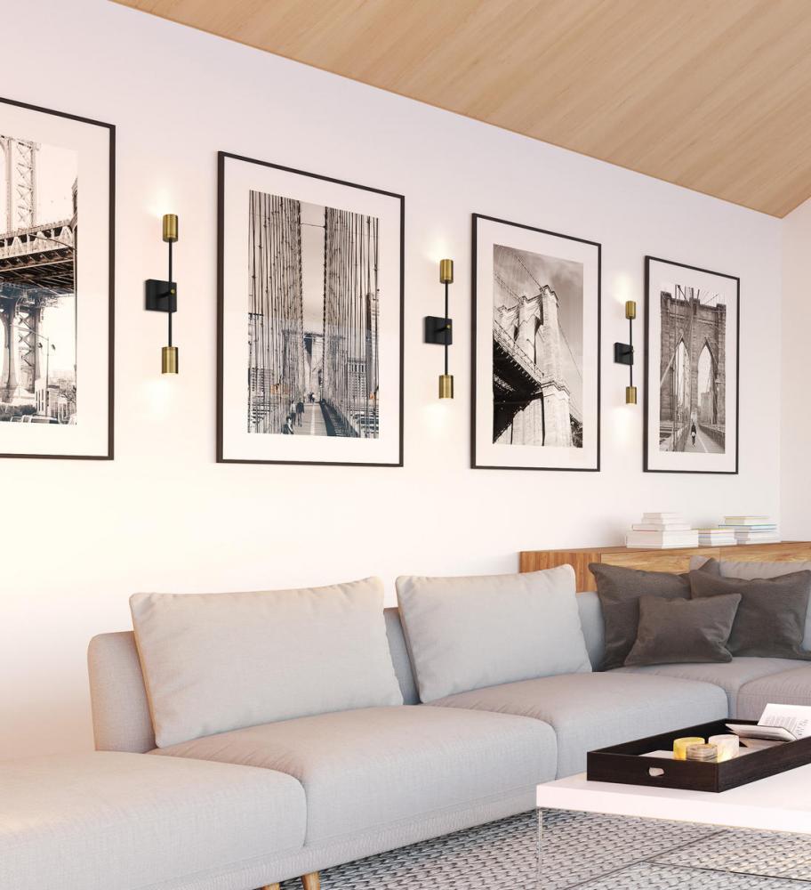 Style simplicity goes dramatic with a nod to Native American heritage, borrowing from an aesthetic tribal staple and repurposing it to fit modern to transitional homes. This two-light wall sconce from the Calumet collection delivers a simple refined silhouette with a matte black finish steel wall mount and frame and chic olde brass finish end cap pipe-inspired shades illuminating uplighting and downlighting.