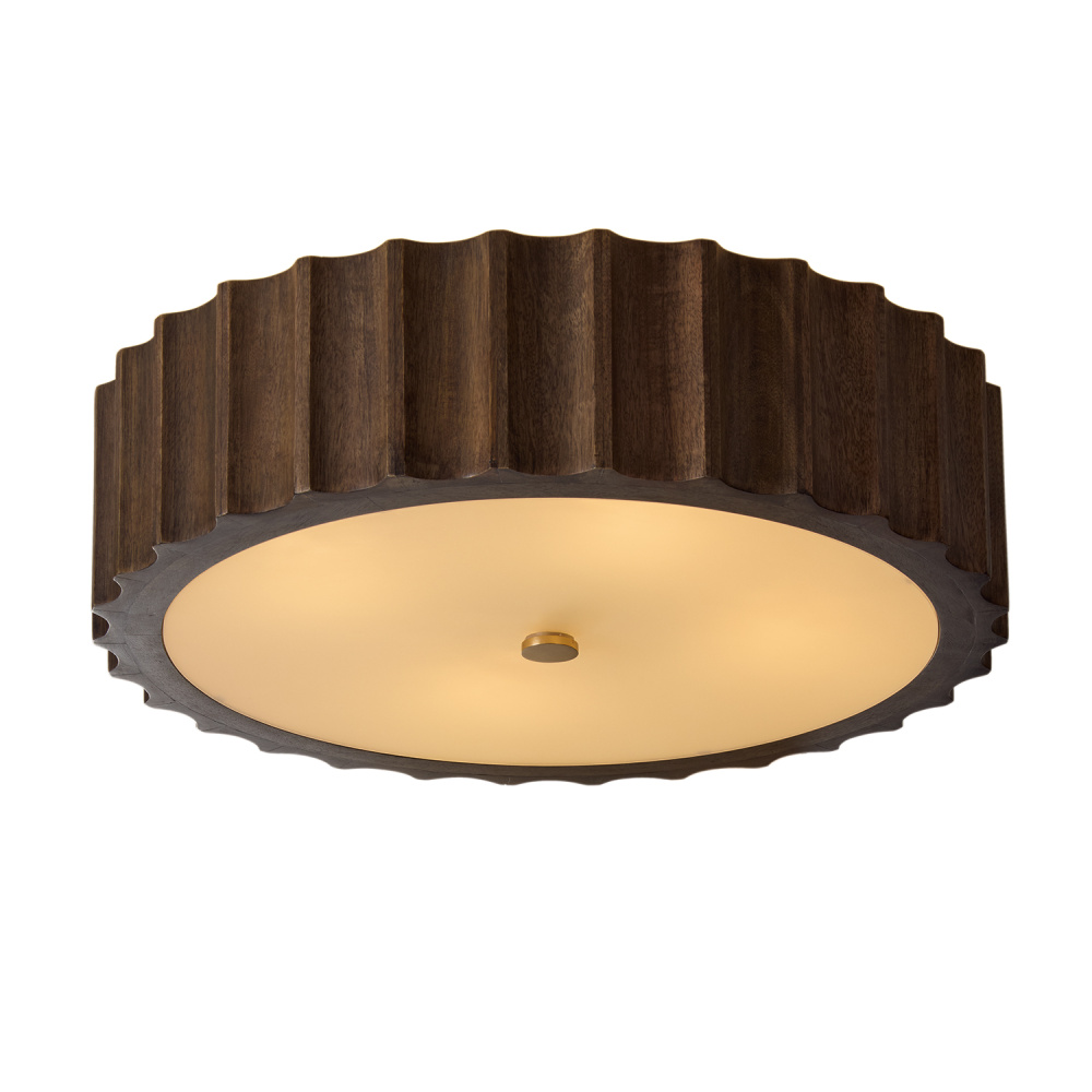 Carved by hand, the dramatic reversed-flute pattern creates textural appeal in the Cody Semi-Flush. The White acrylic diffuser brings a polished look and pairs gorgeously with the Nordic stained mango wood, while the Matte Brass finish adds a touch of shine to the large-scale silhouette.