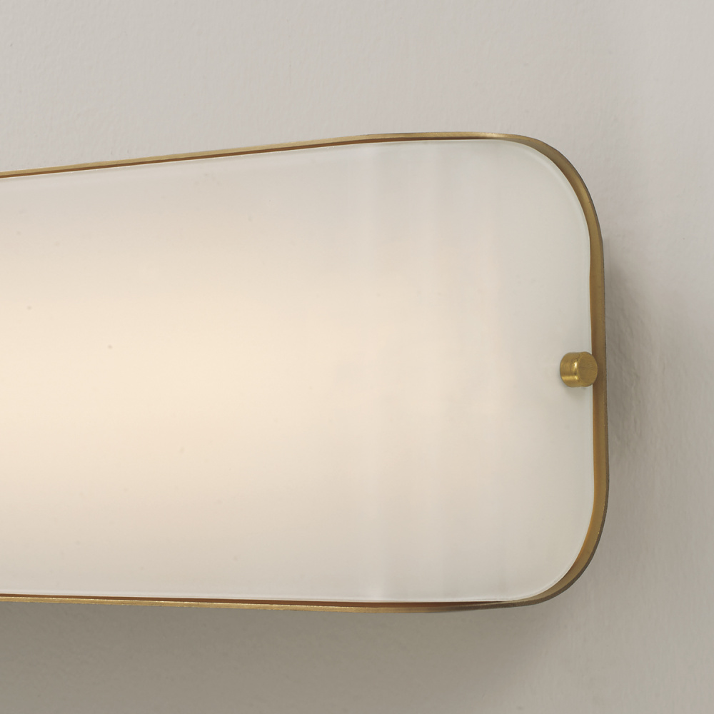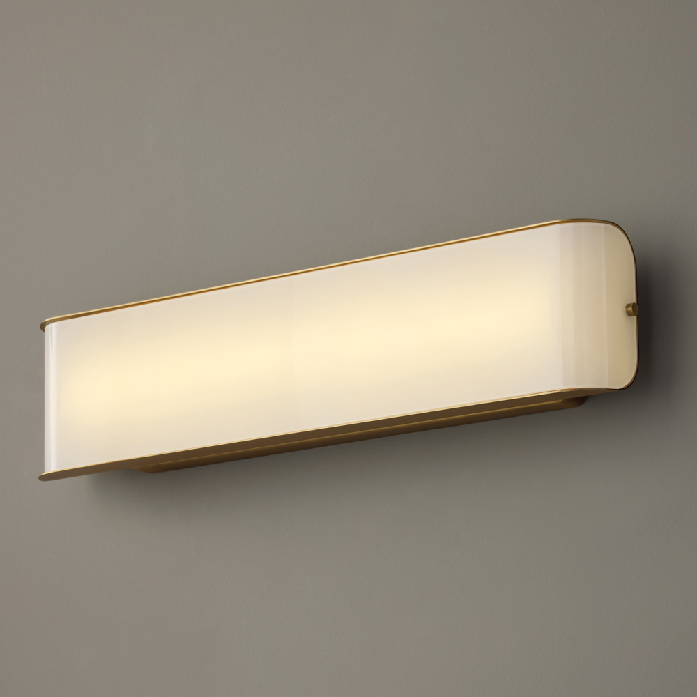 Beautifully sleek, the Marcell Vanity combines Aged Brass and an integrated LED with a chic silhouette. The curved glass panel of light showcases stunning illumination amongst the metal base, which add visual interest to the dapper luminaire. Complete with color changing technology — choose from three hues: 3000, 4000, or 5000 Kelvin.