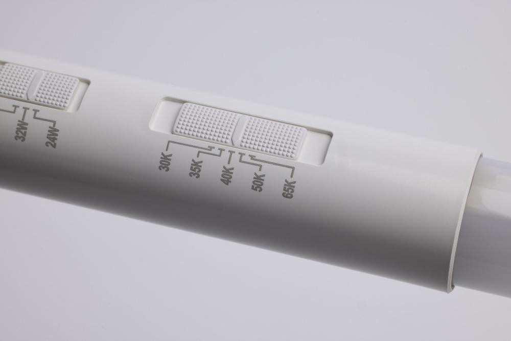 SATCO NUVO's T8 8' ballast bypass lamp is field selectable, offering three wattage options and five CCT options in one convenient unit. Built for use in Fa8 lamp holders, it also comes with R17d adapter caps, making it versatile for use in a variet
