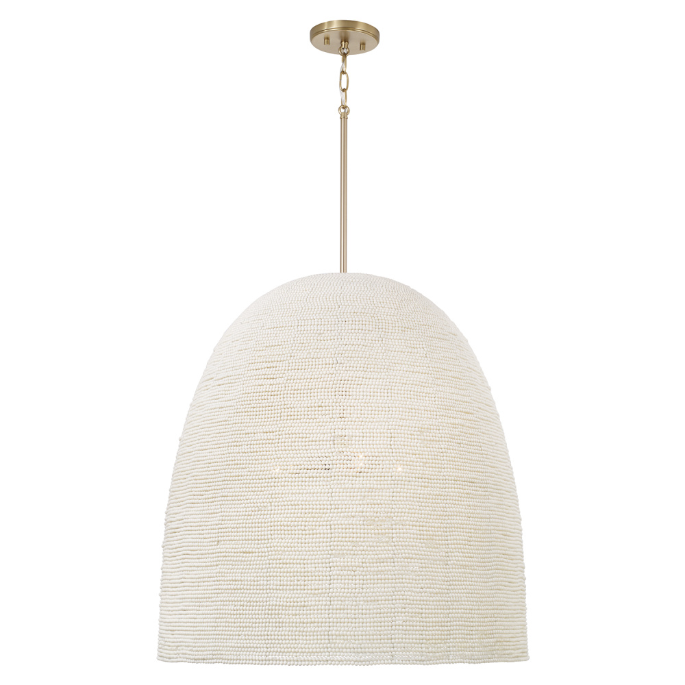 Bring a stunning display of artisan style to any space with the Natalia Large Pendant. Beaded by hand into a beautiful dome silhouette, this luminaire strikes a delicate balance of intricate and robust. For an extra tailored touch, each fixture comes with an optional oversized loop accent at the top. Finished in Aged Brass for timeless shine.