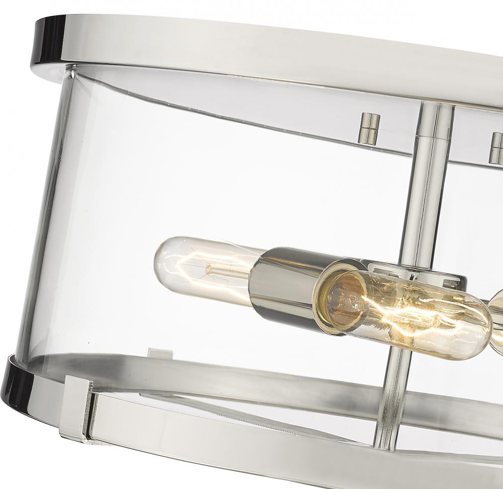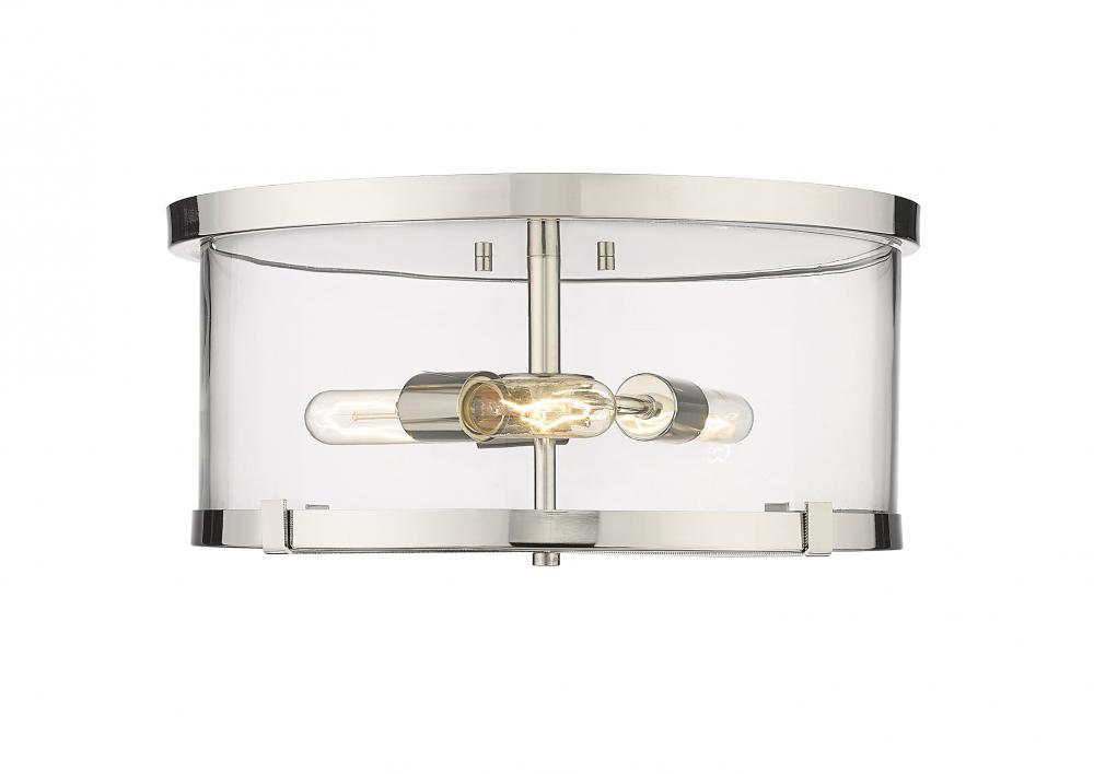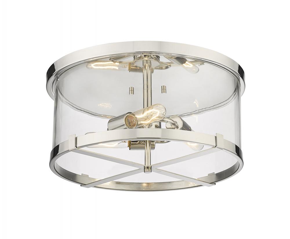 Radiance and light essence combine to bring an indulgent glam to any modern or transitional space with the Callista three-light flush mount ceiling light. This intriguing light features a mix of village and industrial aesthetics with its hand-crafted polished nickel finish steel frame and clear glass shade that prop up full view of charming bulb mounts meant to be seen.