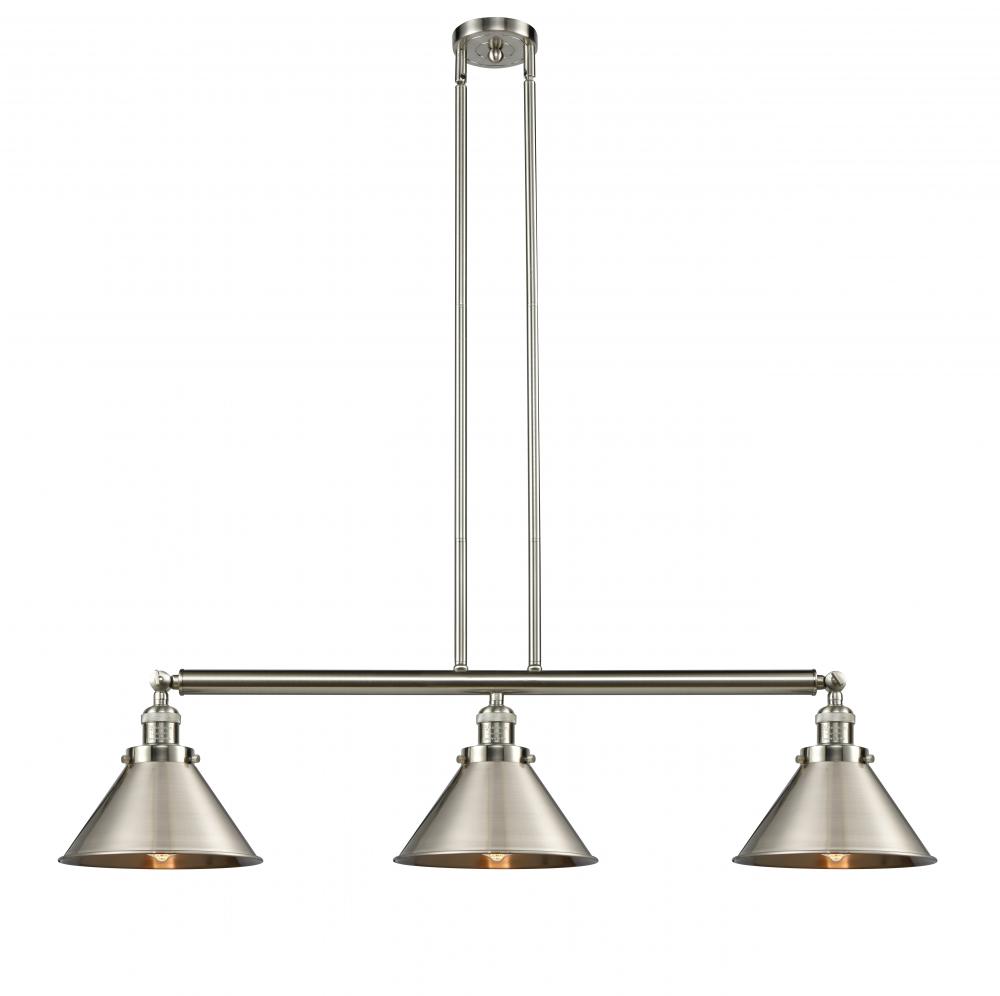 Briarcliff 3-100 watt 36 inch Brushed Satin Nickel Island Light with Brushed Satin Nickel Briarcliff shades and Solid Brass Hang Straight Swivels