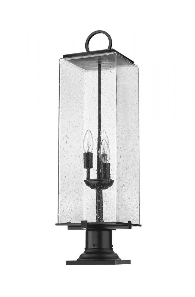 This sleek, coastal-inspired three-light outdoor pier-mounted fixture in black features will look perfect on your porch or patio. Coming with a black finish and seeded glass shade.