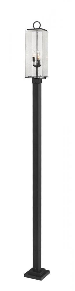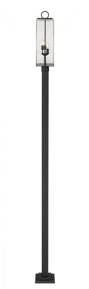 This black outdoor post mounted fixture provides a warm glow for your porch or patio. It features a seedy glass shade in a black finish with steel construction in a rectangular silhouette, bringing coastal vibes that make the neighbors look twice.