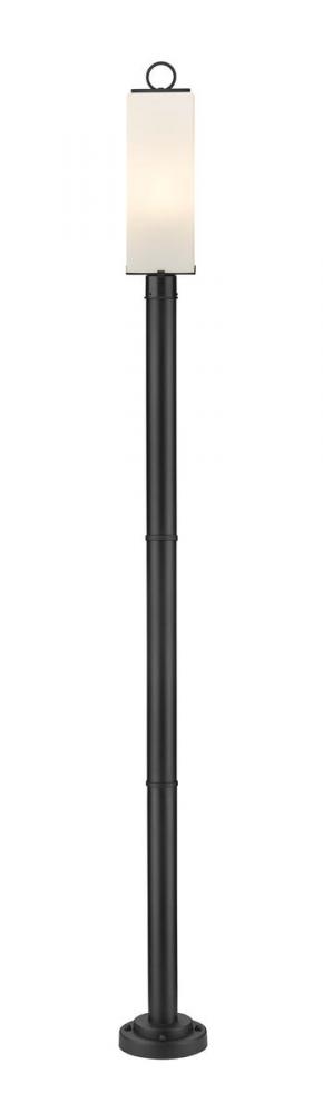 A charmingly simple three-light outdoor post mounted fixture made from steel is enhanced with a with a black finish. It is dimmable with a white opal shade with coastal and contemporary styling, making an eye-catching addition to any porch or patio.