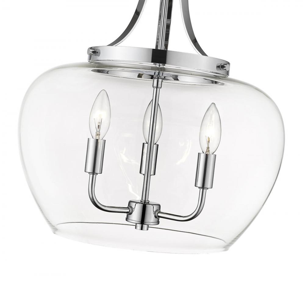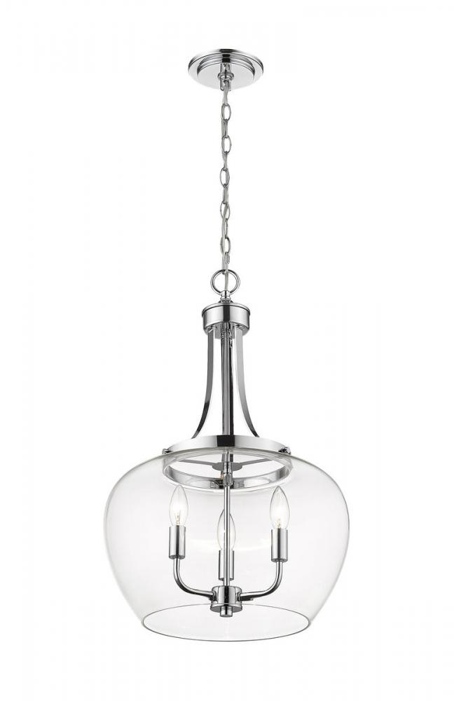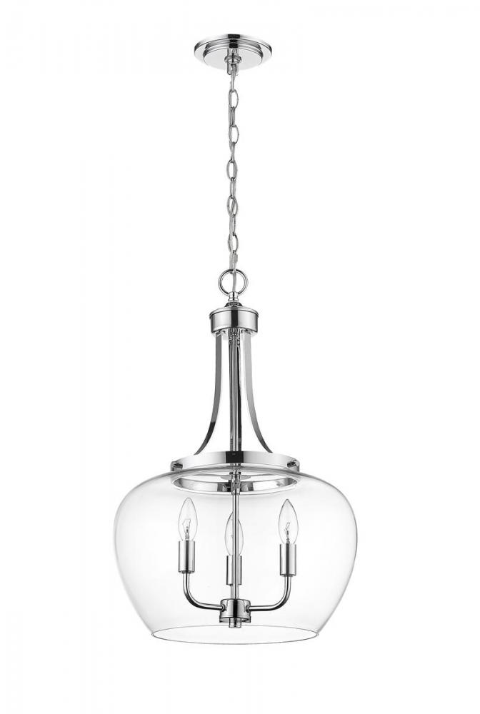 Contemporary elegance makes a difference in this glam steel and glass three-light pendant light, a solid choice for an ultra-modern, custom kitchen, bedroom, or living area. Choose this exquisite pendant from the Joliet collection, admiring its Bordeaux clear glass shade that embellishes an artisanal chrome finish steel mount, chain, and round canopy, creating a low-key yet high-class effect.
