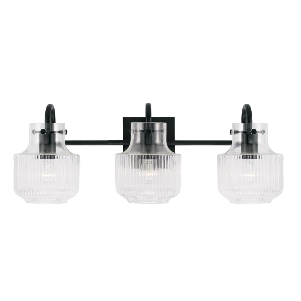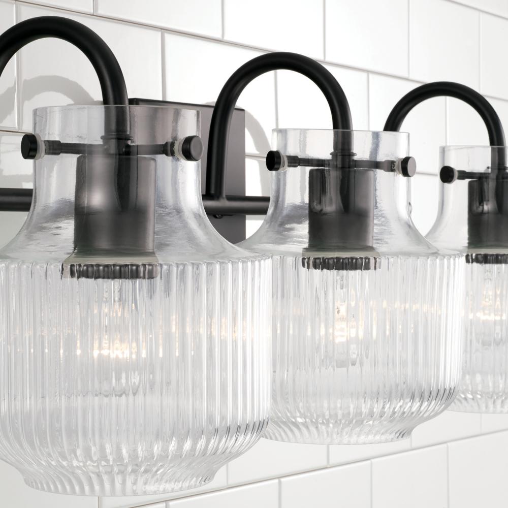 Fluted glass and a tulip silhouette create organic intrigue with the Nyla 3-Light Vanity. The timeless tone of the Matte Black finish reflects a sleek and stunning style. Also available in a 2-Light.