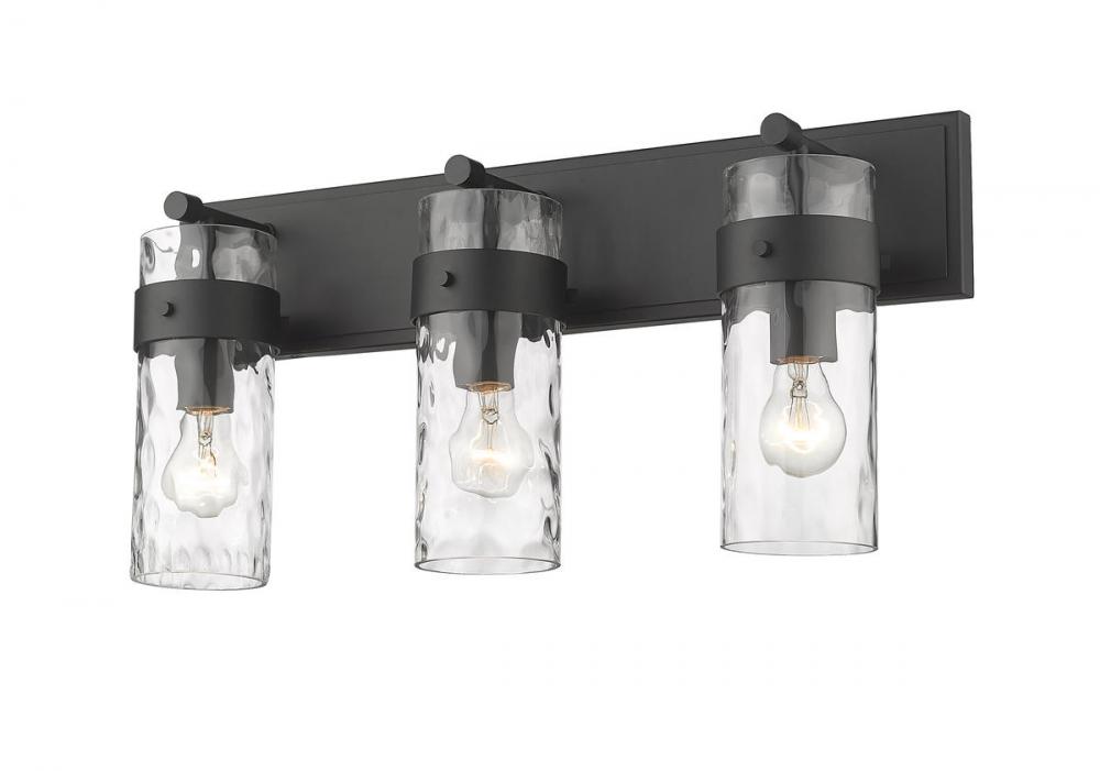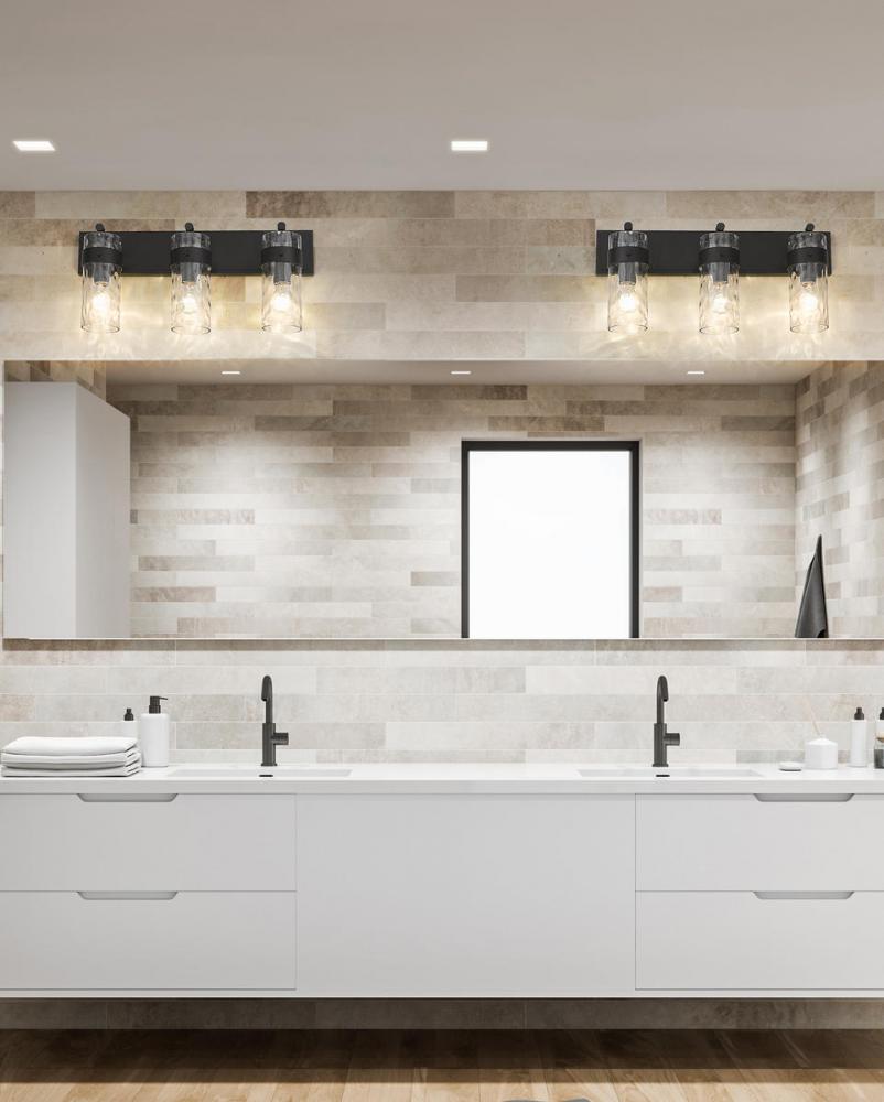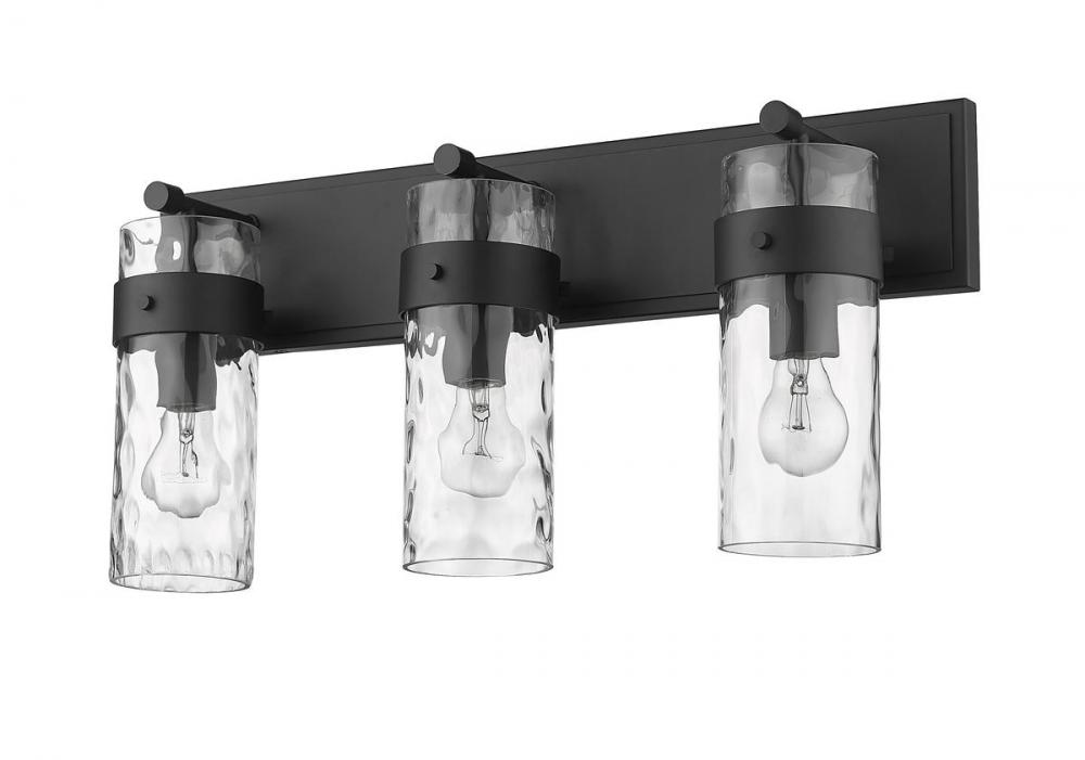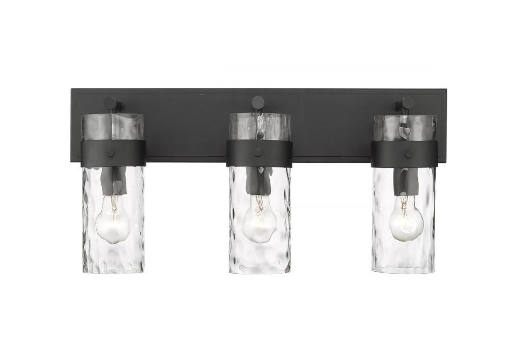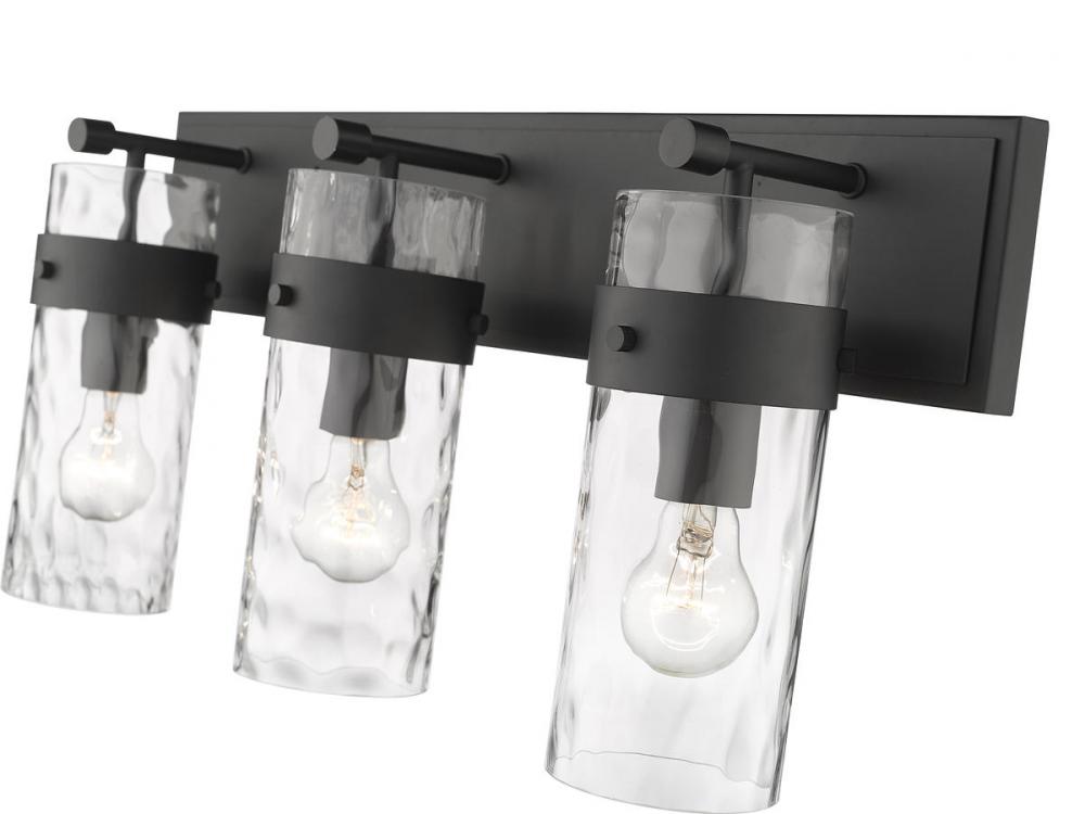 Equal parts stylish and functional, this three-light vanity fixture is alluring. The cylindrical glass shade is accented with a ripple texture in a romantic design. Steel construction in a matte black finish allows it to pair with many types of decor ranging from farmhouse to modern.