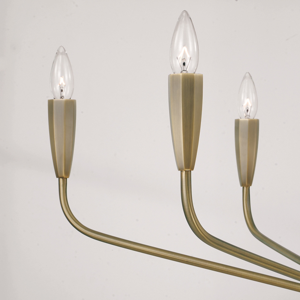 DETAILS: Subtly faceted candle sleeves bring dimension to the elegant silhouette, perfectly complemented by the rich, Antiqued Brass finish and interchangeable finial.