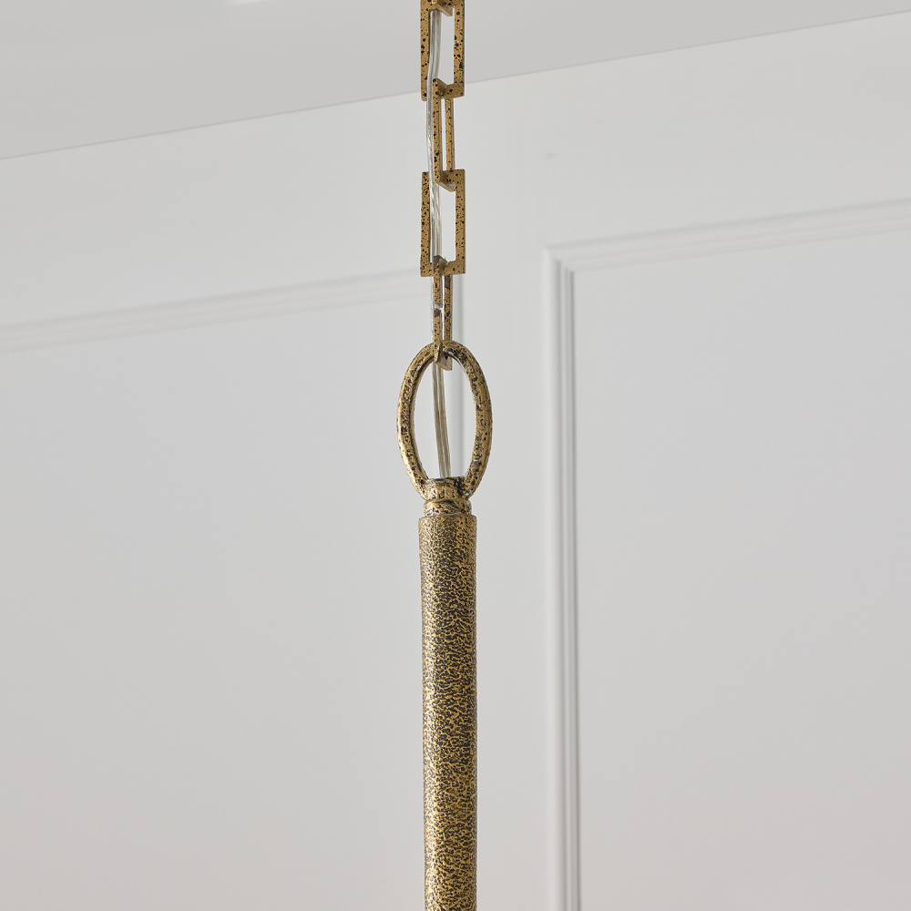 DETAILS: Layers of hand-painted texture bring stunning dimension to the Artisan Gold finish, while the slightly sunken sockets and designer chain create elevated style in the curved, seamless form.