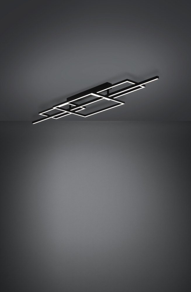 The PUEBLA LED ceiling light consists of a profile made of black metal. The offset arrangement of the rectangular LED profiles gives the light a geometric look. The integrated LEDs produce a pleasant warm white light. Featuring a minimalist and modern design, the product provides stylish lighting for any space
