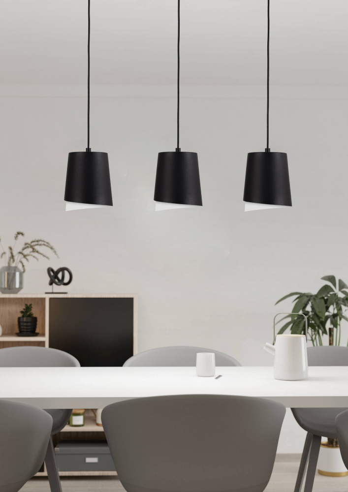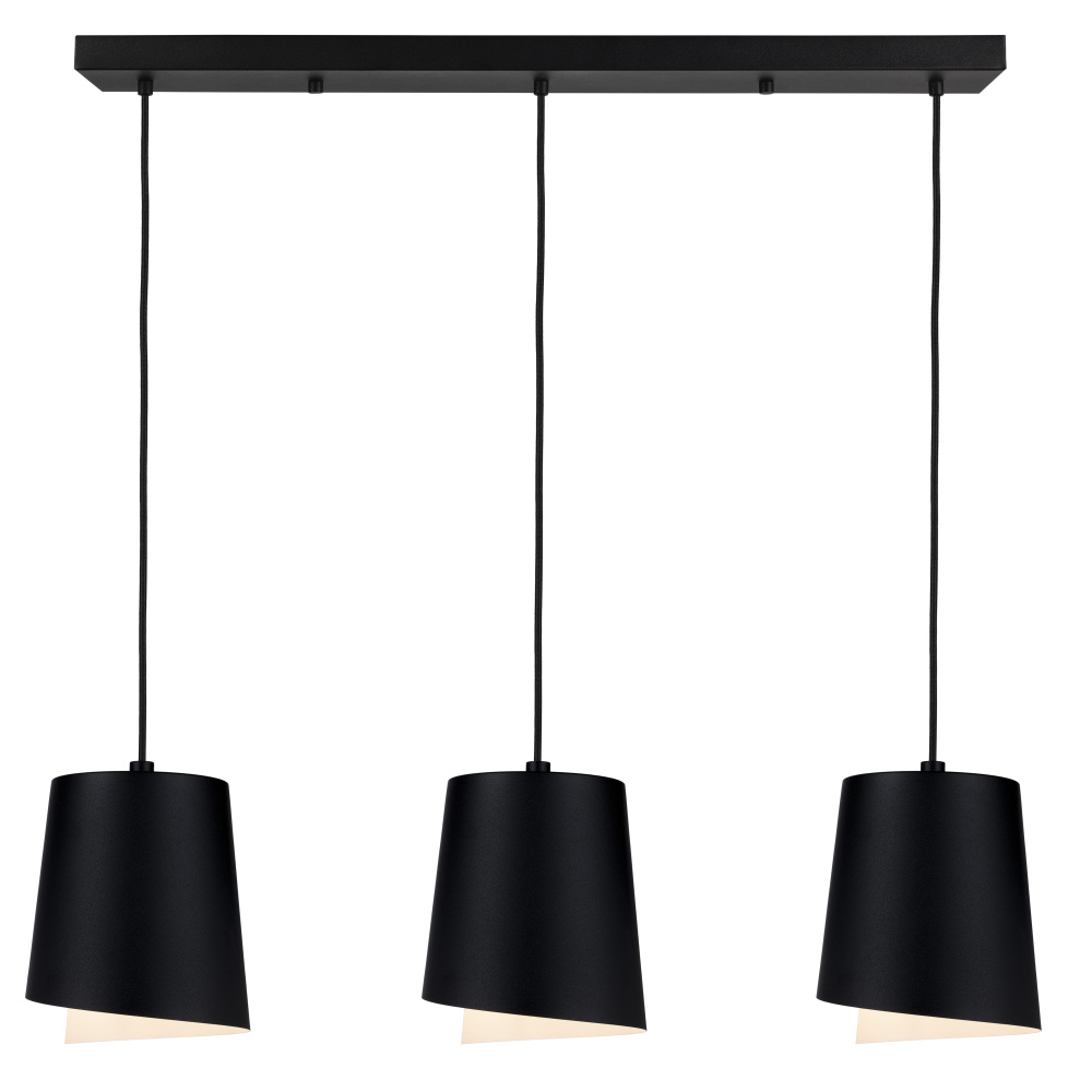 The BOLIVIA 3-light pendant will add a chic focal point for a variety of home styles. The black exterior and sandel wood interior of the metal shades adds decorative down lighting to your dinnig room, over your kitchen island or foyer. The shades are hung from black textile cords that are height adjustable.