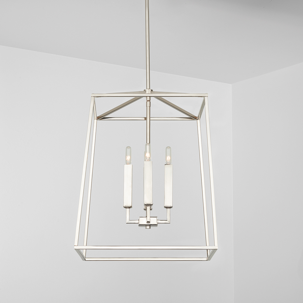 Timeless yet on-trend, the symmetrical, clean lines in this collection make a statement without being overpowering. The slim silhouette and open, lantern shape create a punctuated design. This versatile fixture is available in a wide variety of sizes and finishes.