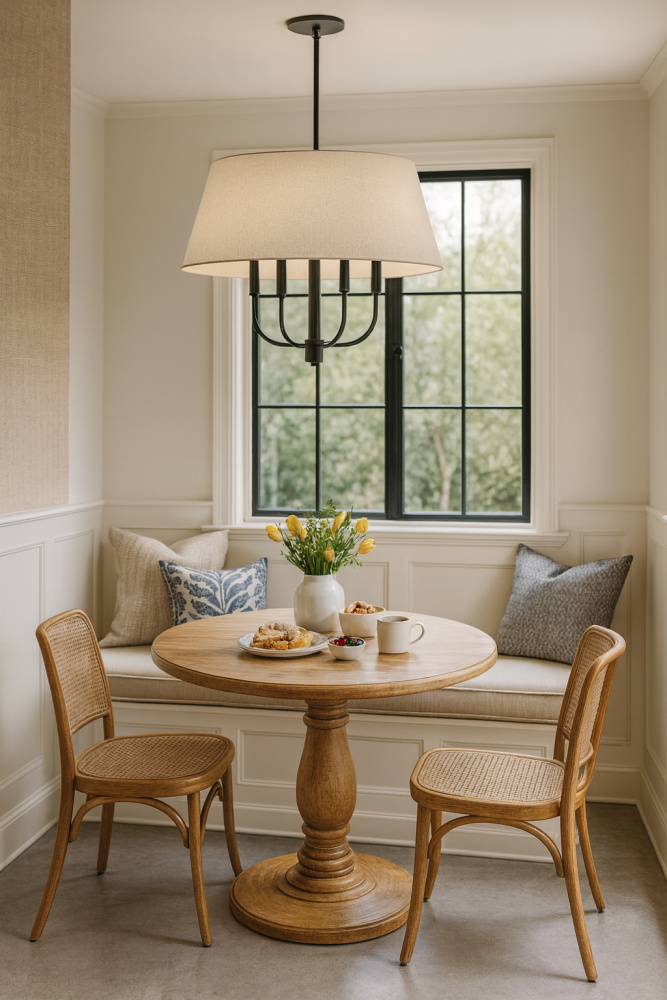 4 Light Incandescent Matte Black Chandelier with Boucle Fabric Shade