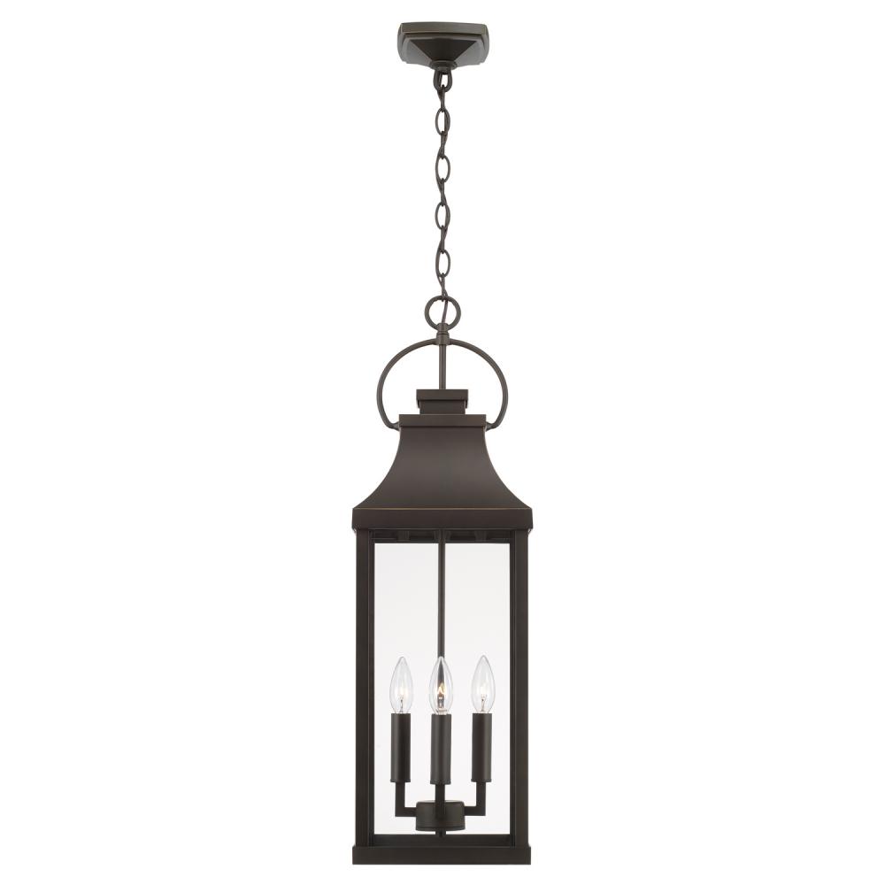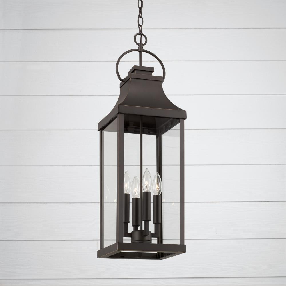 Transitional meets modern with the Bradford Hanging Lantern. The bold lines and an oversized ring in a Oiled Bronze finish adds classic curb appeal to your home. Part of our Rain or Shine Collection and backed by our five-year warranty.