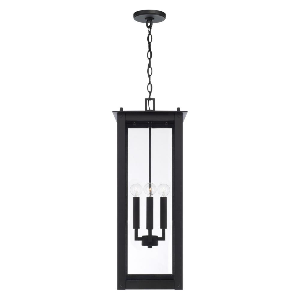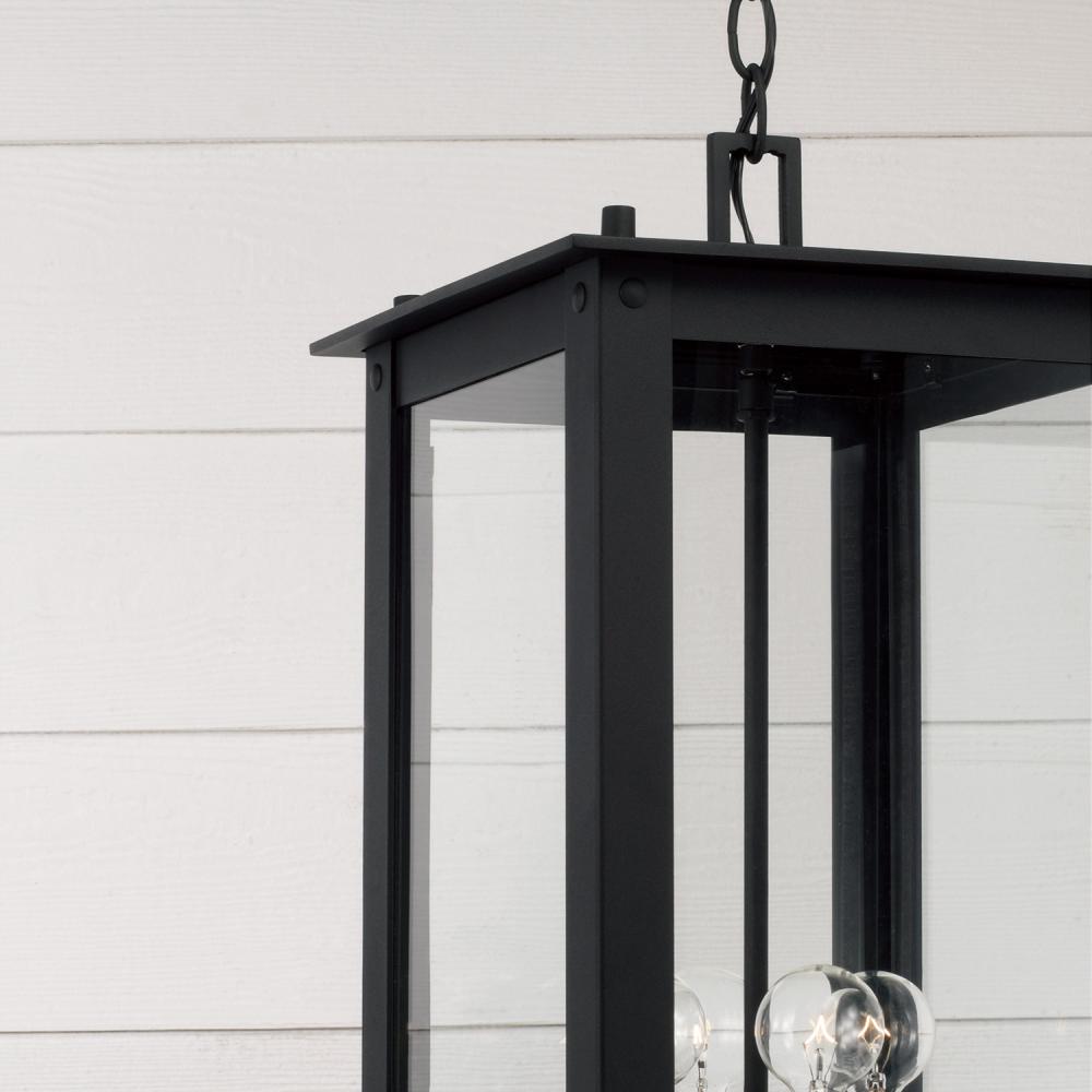 4-Light Outdoor Rectangular Hanging Lantern in Black with Clear Glass